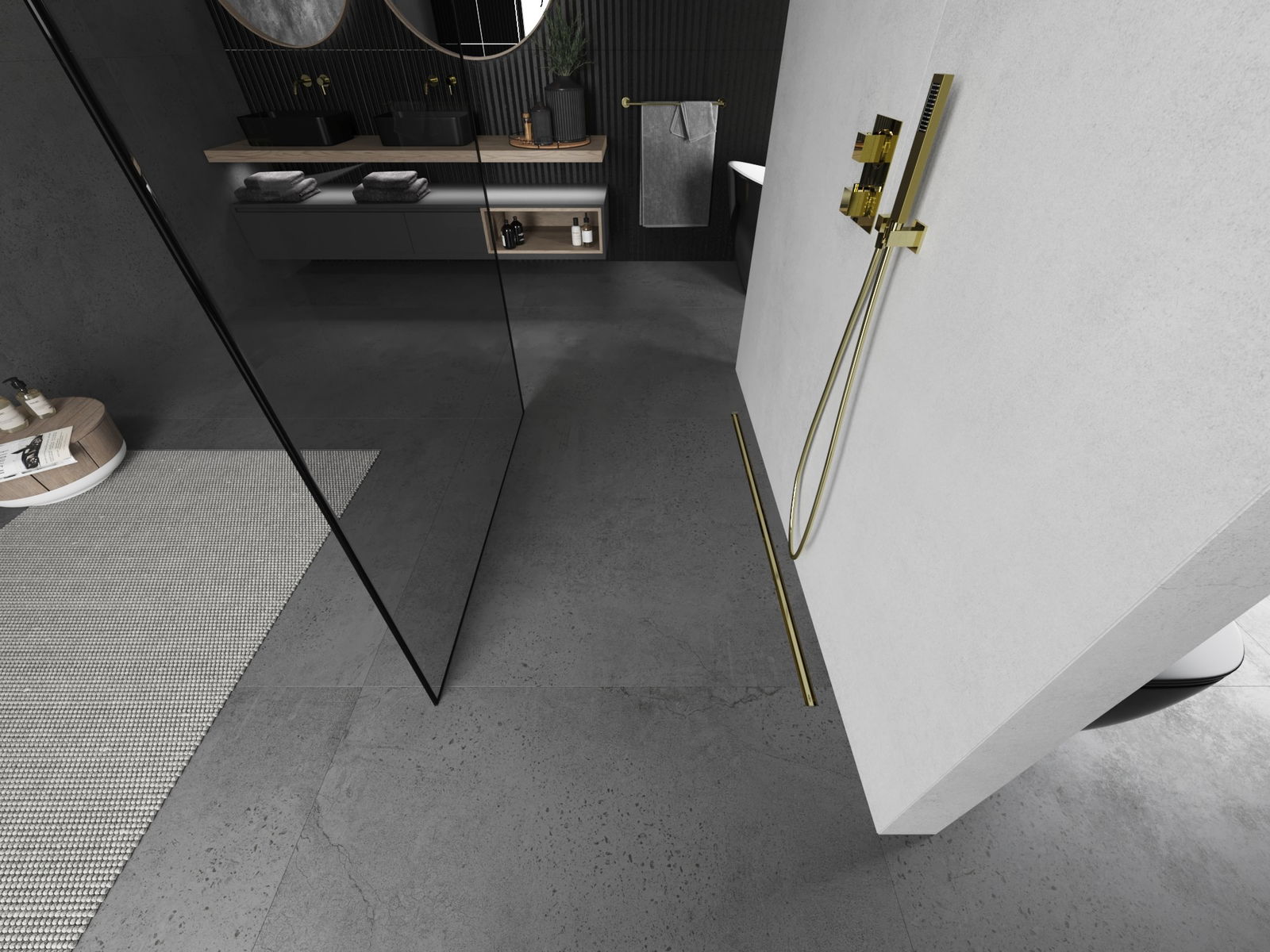 Mexen Kioto paroi de douche autoportante 110 x 200 cm, cadre noir 8 mm, or brossé - 800-110-002-55-70