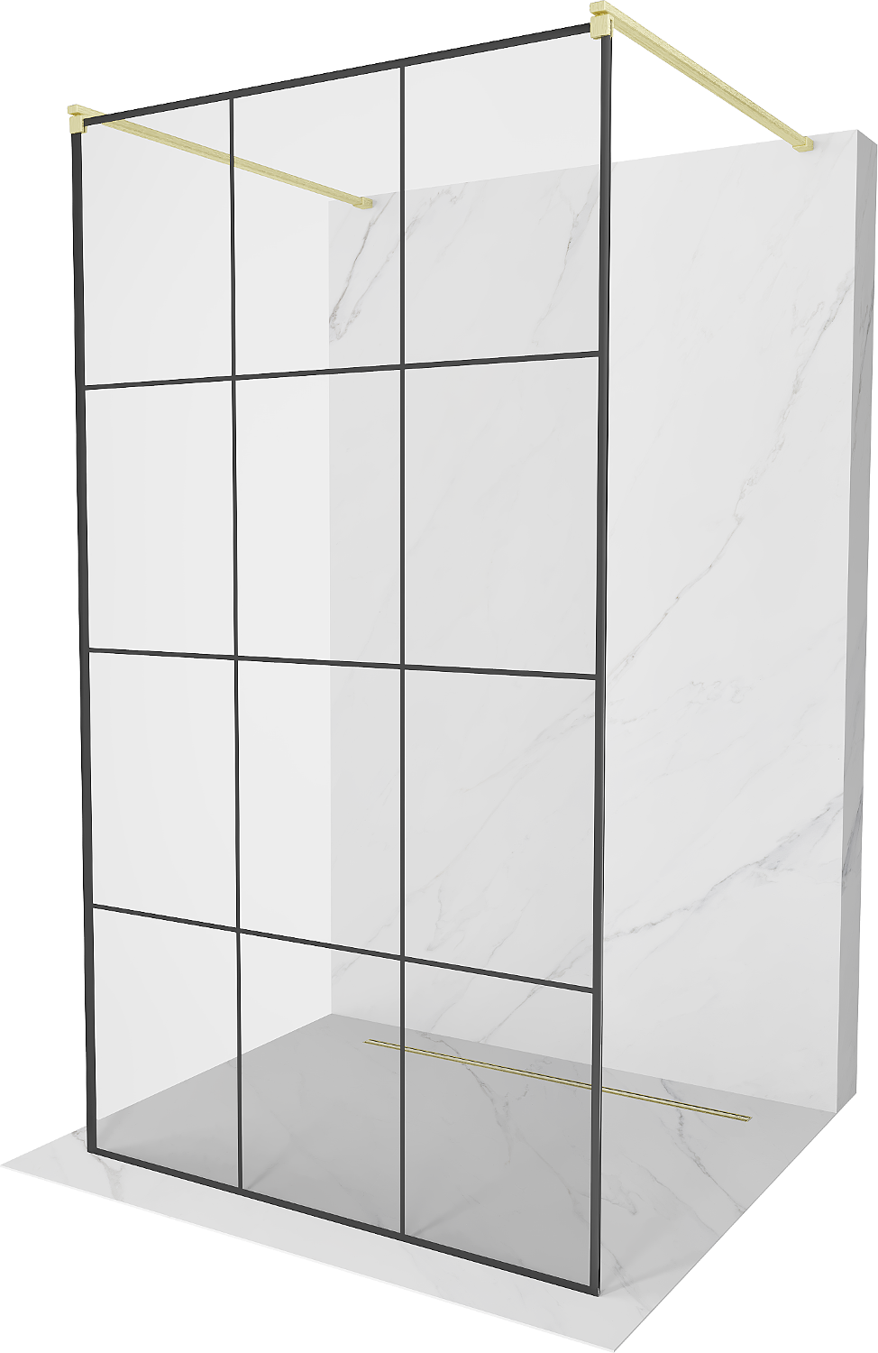 Mexen Kioto paroi de douche autoportante 120 x 200 cm, grille noire 8 mm, or brossé - 800-120-002-55-77