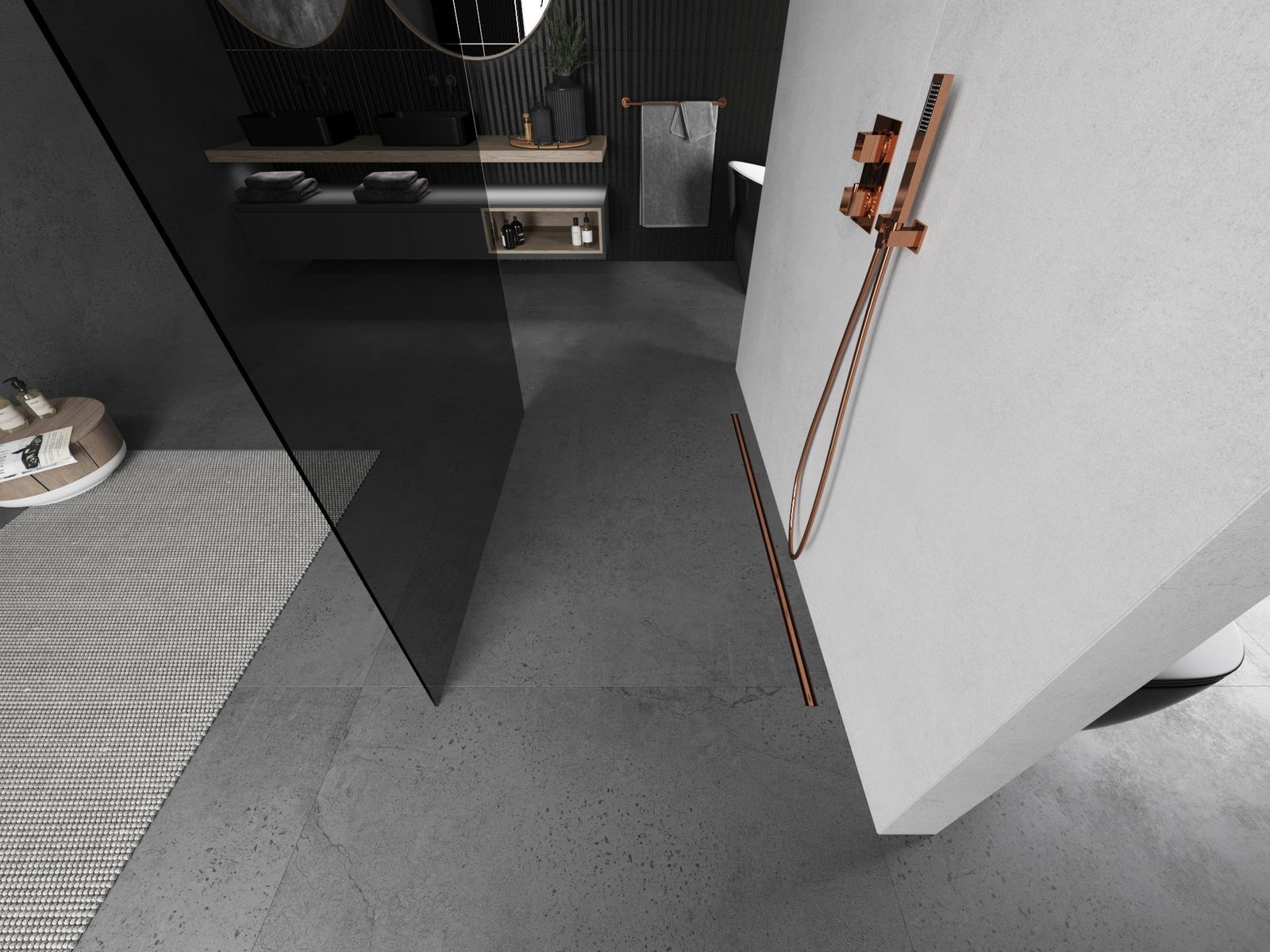 Mexen Kioto paroi de douche autoportante 110 x 200 cm, graphite 8 mm, cuivre brossé - 800-110-002-65-40