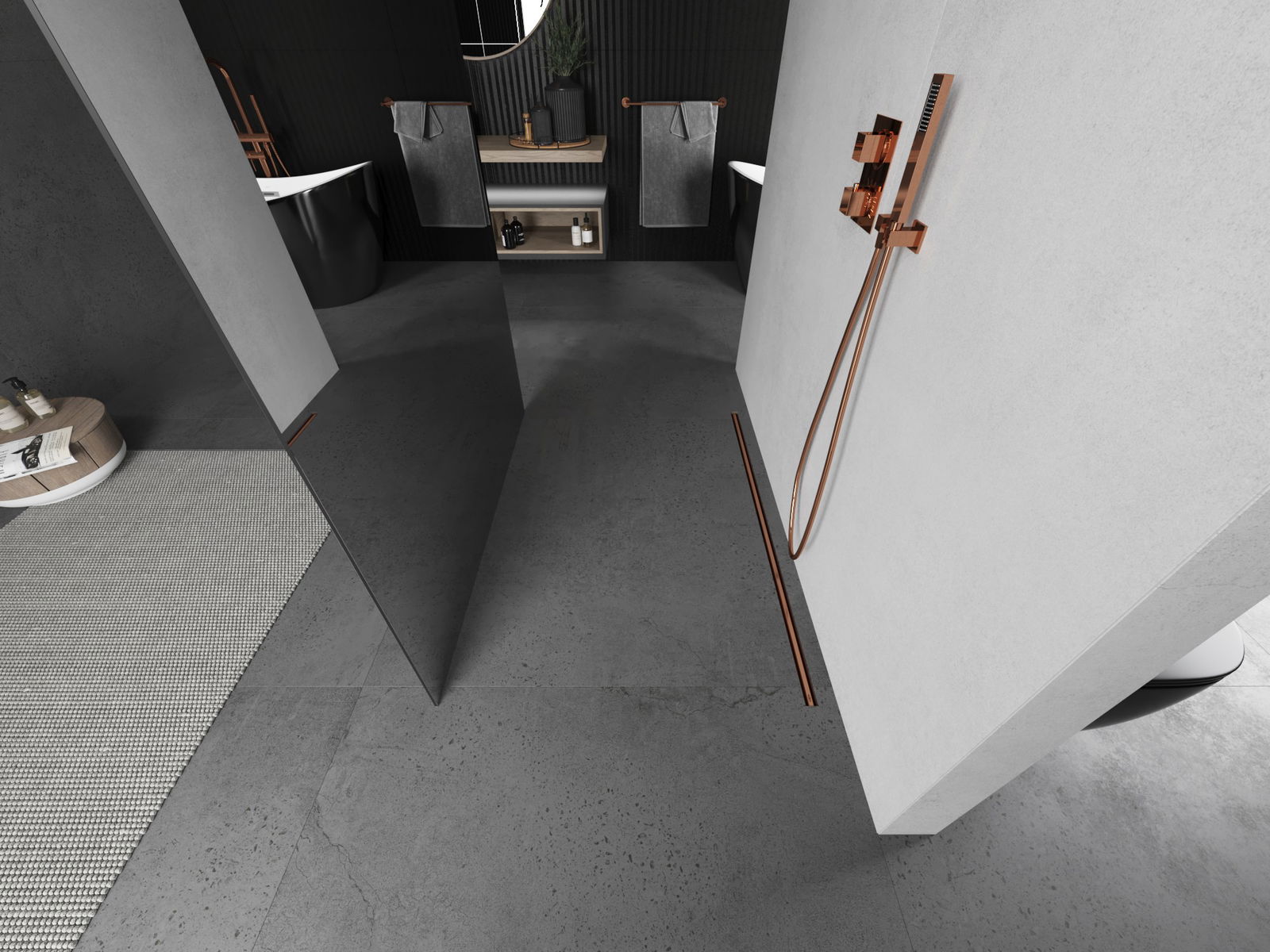 Mexen Kioto paroi de douche autoportante 130 x 200 cm, miroir 8 mm, cuivre brossé - 800-130-002-65-50