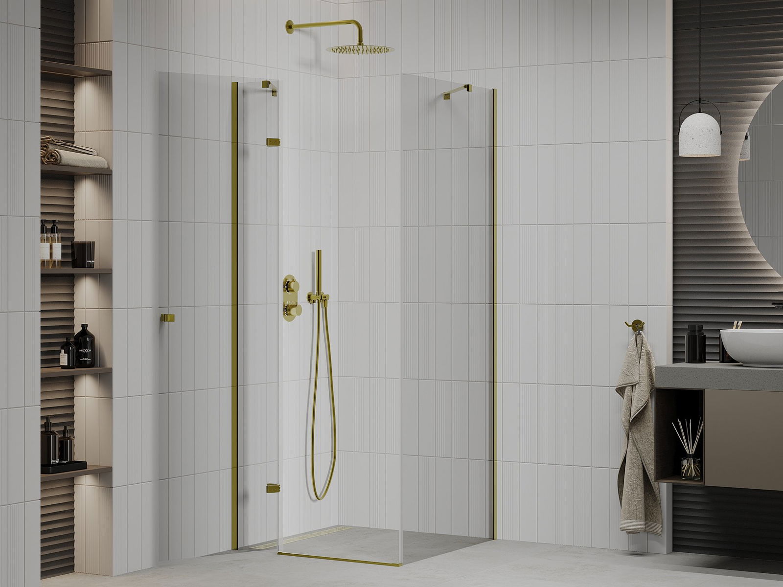 Mexen Roma cabine de douche pivotante 70 x 70 cm, transparent, doré - 854-070-070-50-00