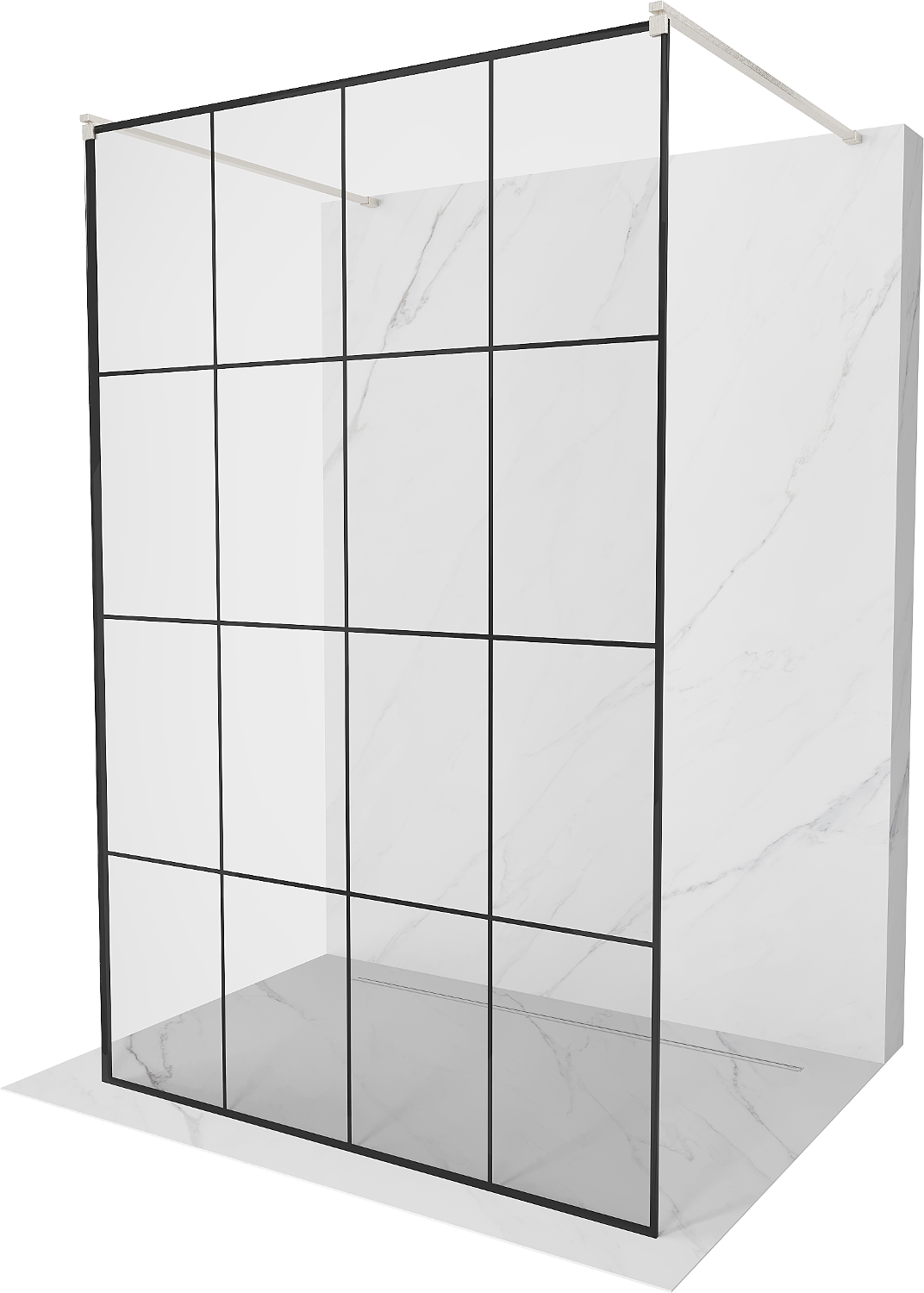 Mexen Kioto paroi de douche autoportante 140 x 200 cm, grille noire 8 mm, nickel brossé - 800-140-002-97-77