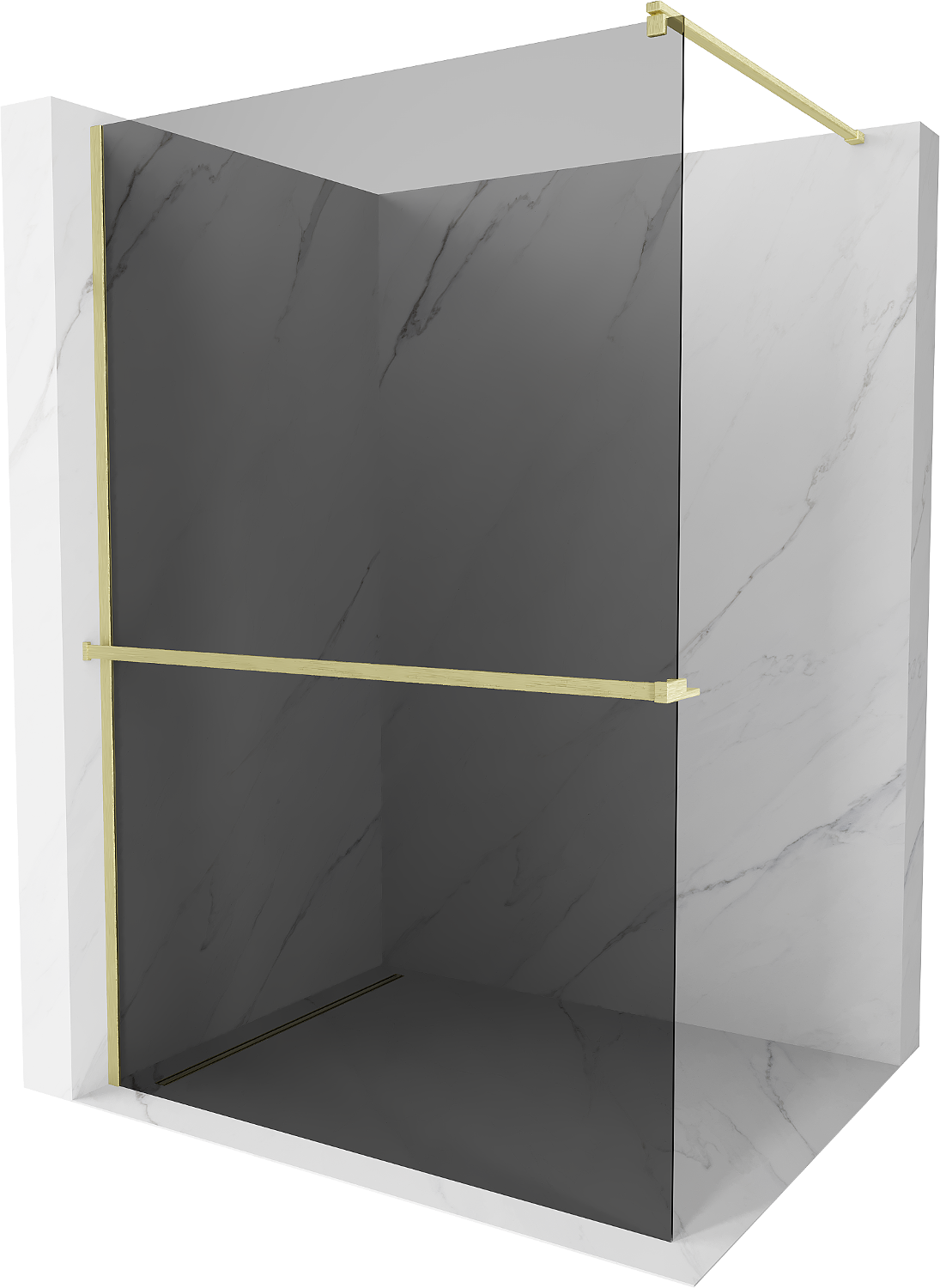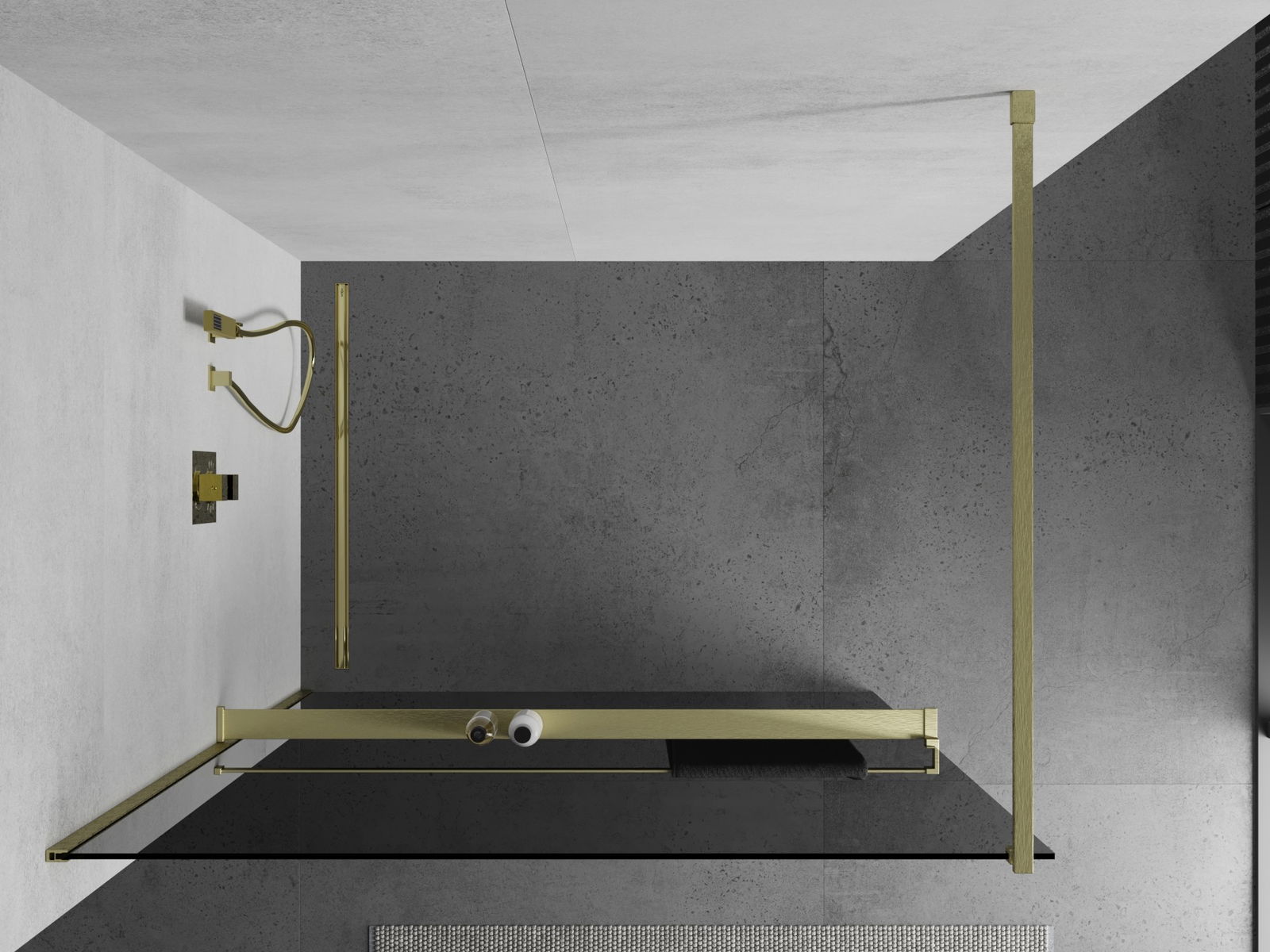 Mexen Kioto+ paroi de douche avec étagère Walk-in 70 x 200 cm, graphite, or brossé - 800-070-121-55-40