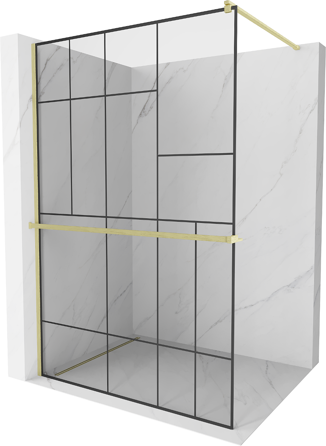 Mexen Kioto+ paroi de douche avec étagère Walk-in 70 x 200 cm, motif noir, or brossé - 800-070-121-55-78