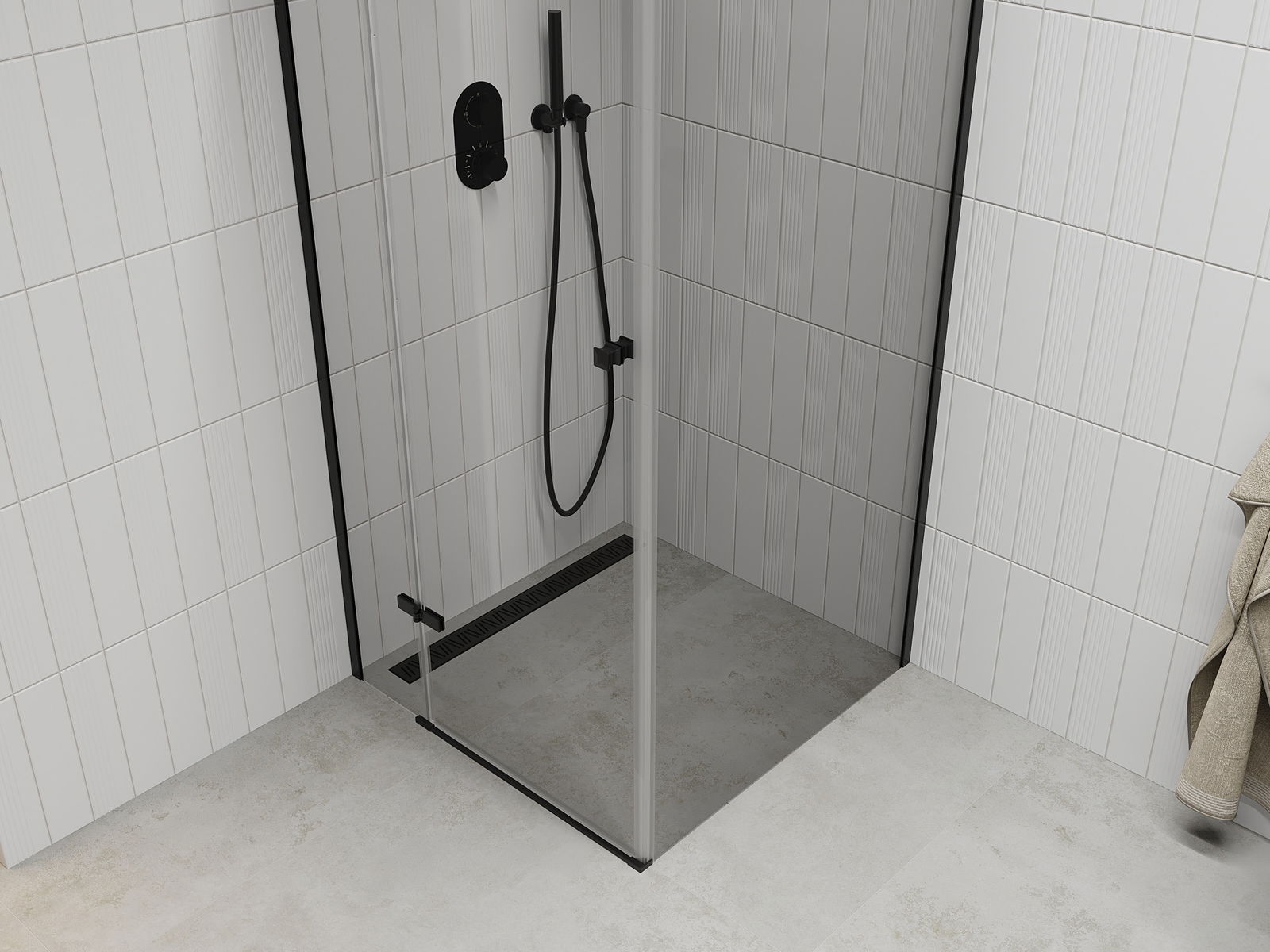 La poignée pratique et confortable est fabriquée en métal durable et résistant. Sa forme à la mode, combinée à une finition assortie à la couleur des profilés, donne à l'ensemble un aspect moderne et stylé, soulignant l'esthétique de chaque salle de bain.
