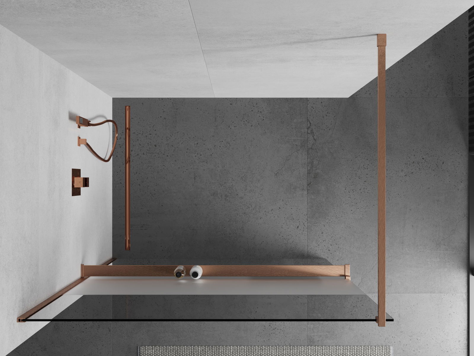 Mexen Kioto+ cloison de douche avec étagère Walk-in 140 x 200 cm, transparent/givré, cuivre brossé - 800-140-121-65-35