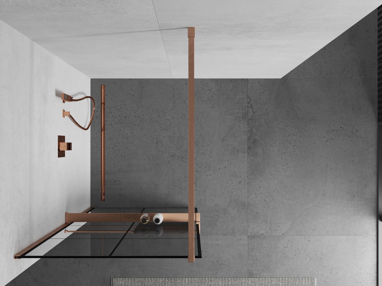 Mexen Kioto+ paroi de douche avec étagère Walk-in 80 x 200 cm, grille noire, cuivre brossé - 800-080-121-65-77