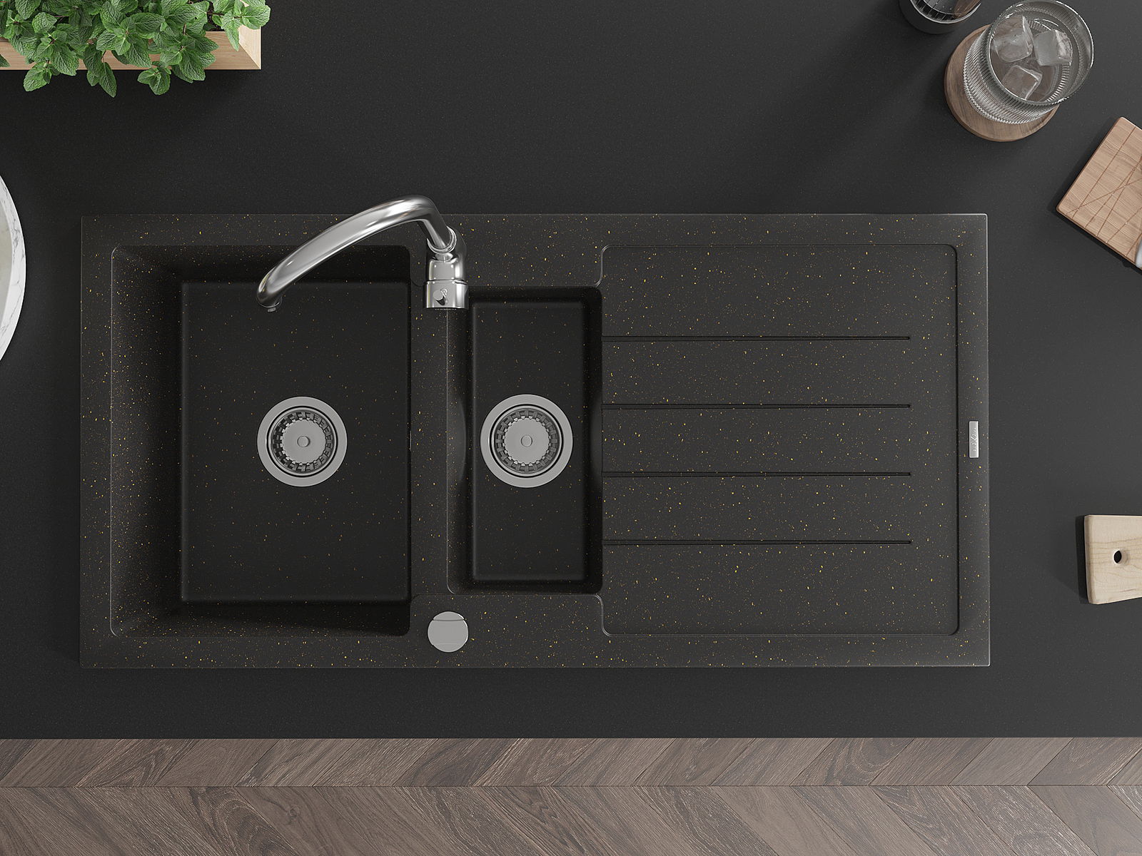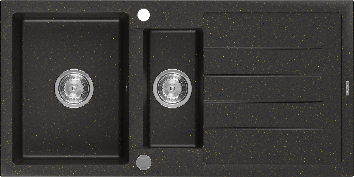 Mexen Andres évier en granit 1,5 bac avec égouttoir 1000 x 500 mm, noir/métallique doré, siphon chromé - 6515101510-75