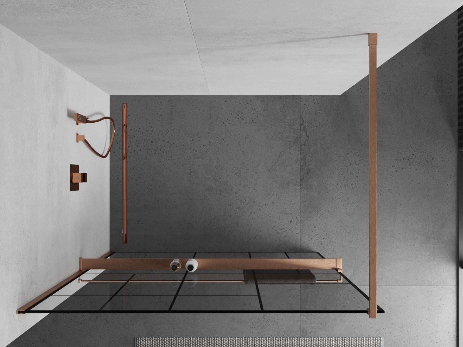 Mexen Kioto+ paroi de douche avec étagère Walk-in 80 x 200 cm, motif noir, cuivre brossé - 800-080-121-65-78
