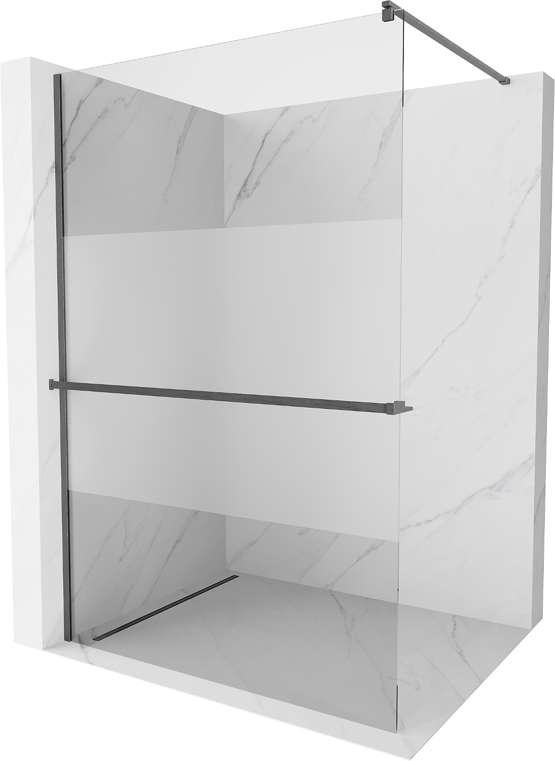 Mexen Kioto+ paroi de douche avec étagère Walk-in 70 x 200 cm, transparent/givre, gris canon brossé - 800-070-121-66-35