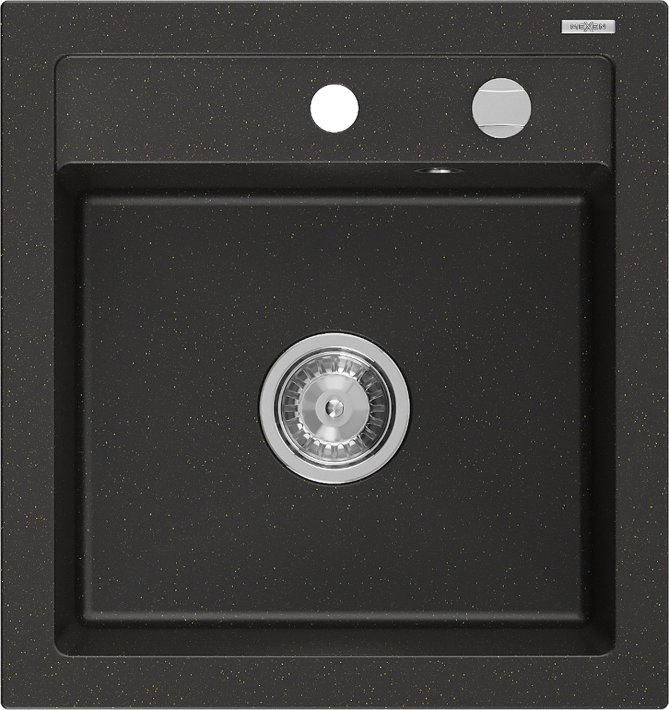 Mexen Vito évier en granit 1 bac 520 x 490 mm, noir/or métallisé, siphon chromé - 6503521000-75