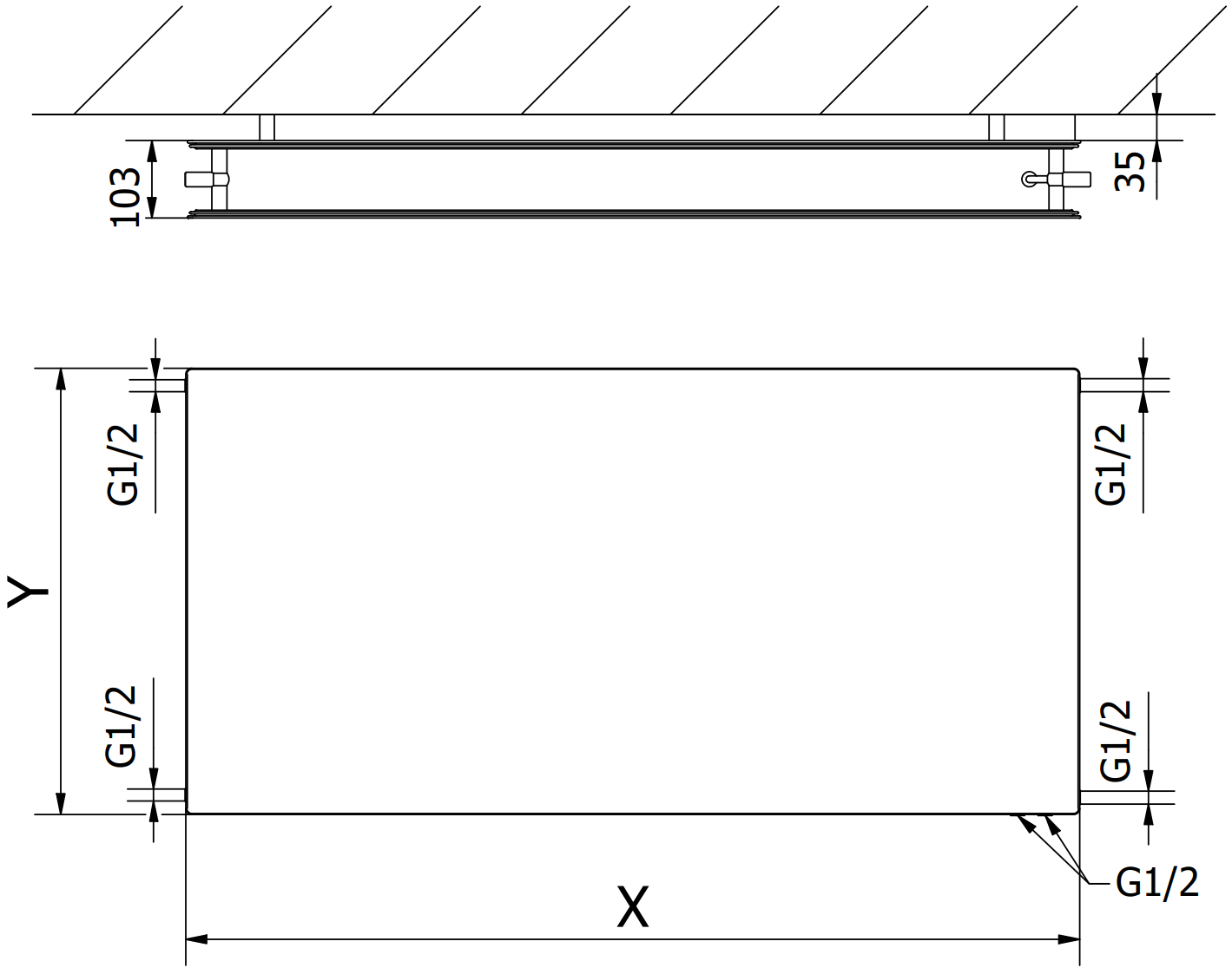- 2xG ½″ en bas à droite