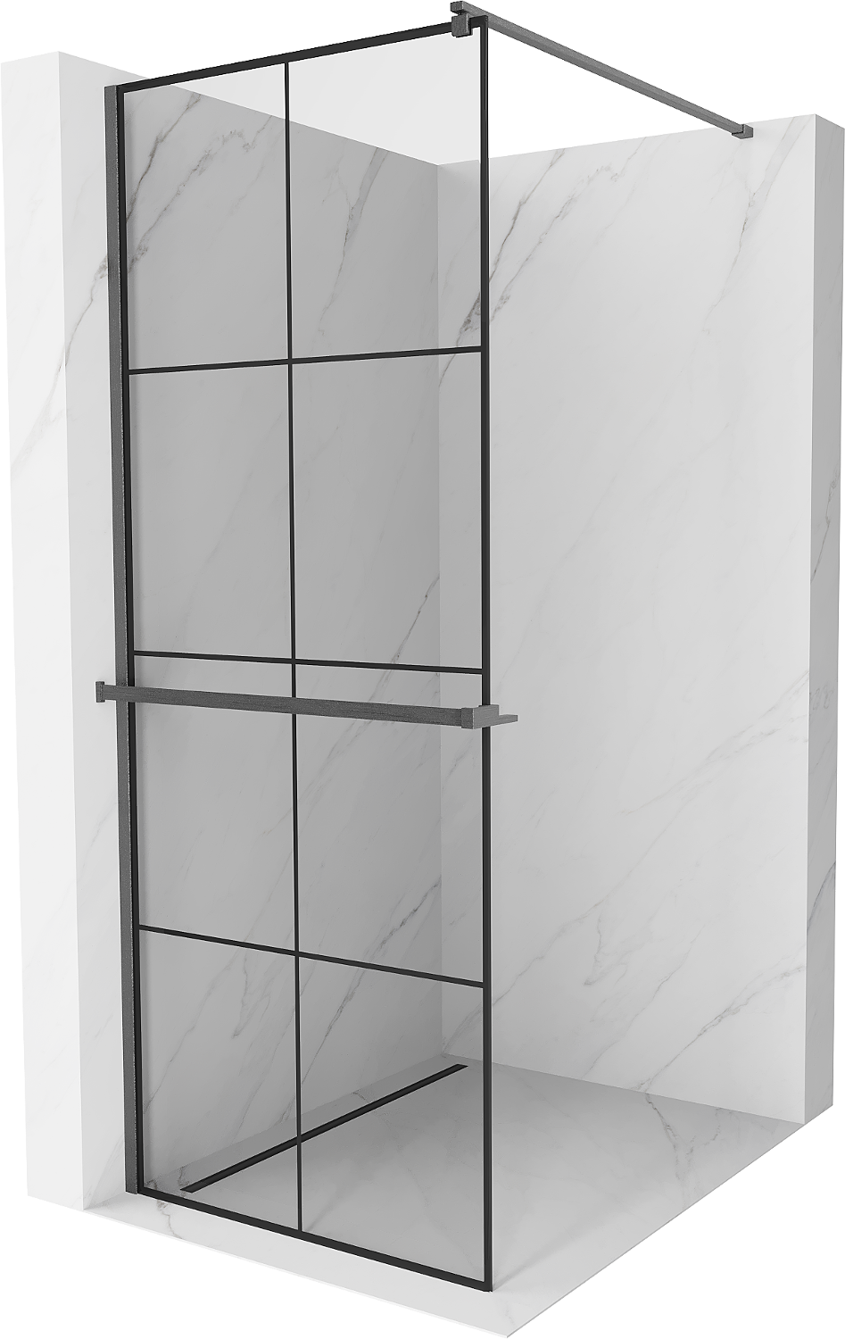 Mexen Kioto+ paroi de douche avec étagère Walk-in 70 x 200 cm, grille noire, gris canon brossé - 800-070-121-66-77