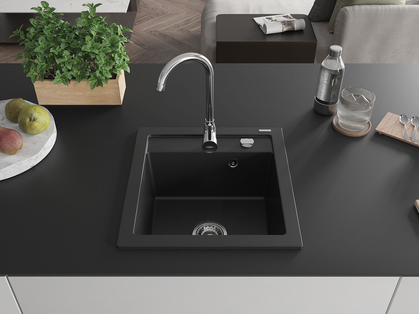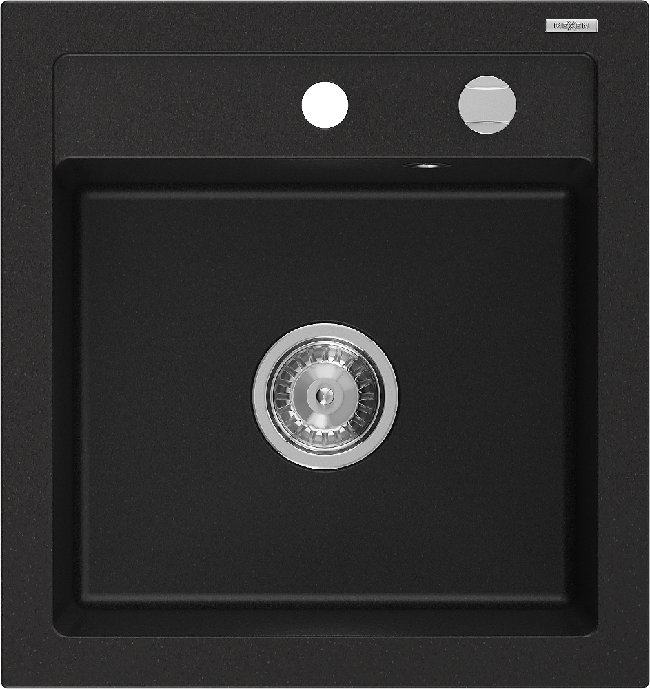 Mexen Vito évier en granit 1 bac 520 x 490 mm, noir, siphon chromé - 6503521000-77