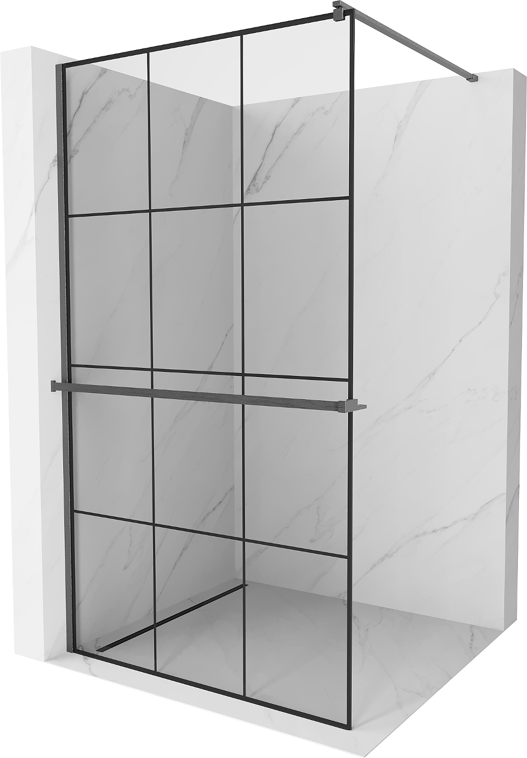 Mexen Kioto+ paroi de douche avec étagère Walk-in 100 x 200 cm, grille noire, gris canon brossé - 800-100-121-66-77