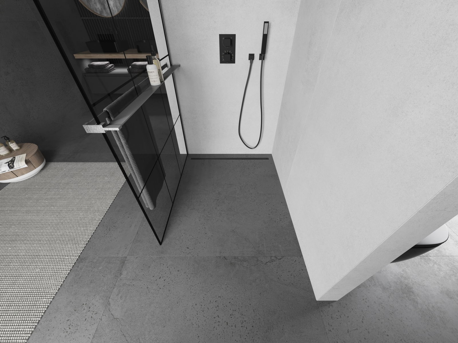 Mexen Kioto+ paroi de douche avec étagère Walk-in 120 x 200 cm, quadrillage noir, gris canon brossé - 800-120-121-66-77