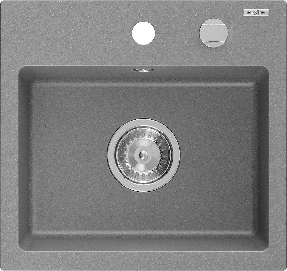 Mexen Milo évier en granit 1 bac 435 x 410 mm, gris, siphon chromé - 6505441000-71