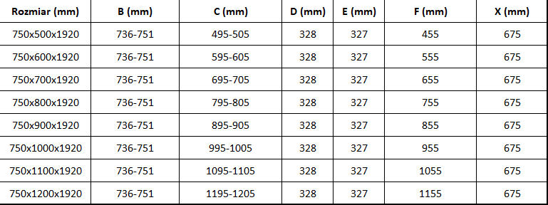 Taille: 75x90 cm (porte 75 cm, paroi 90 cm)