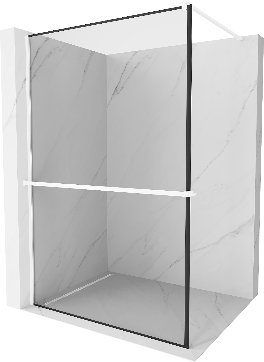 Mexen Kioto+ paroi de douche avec étagère Walk-in 120 x 200 cm, cadre noir, blanc - 800-120-121-20-70