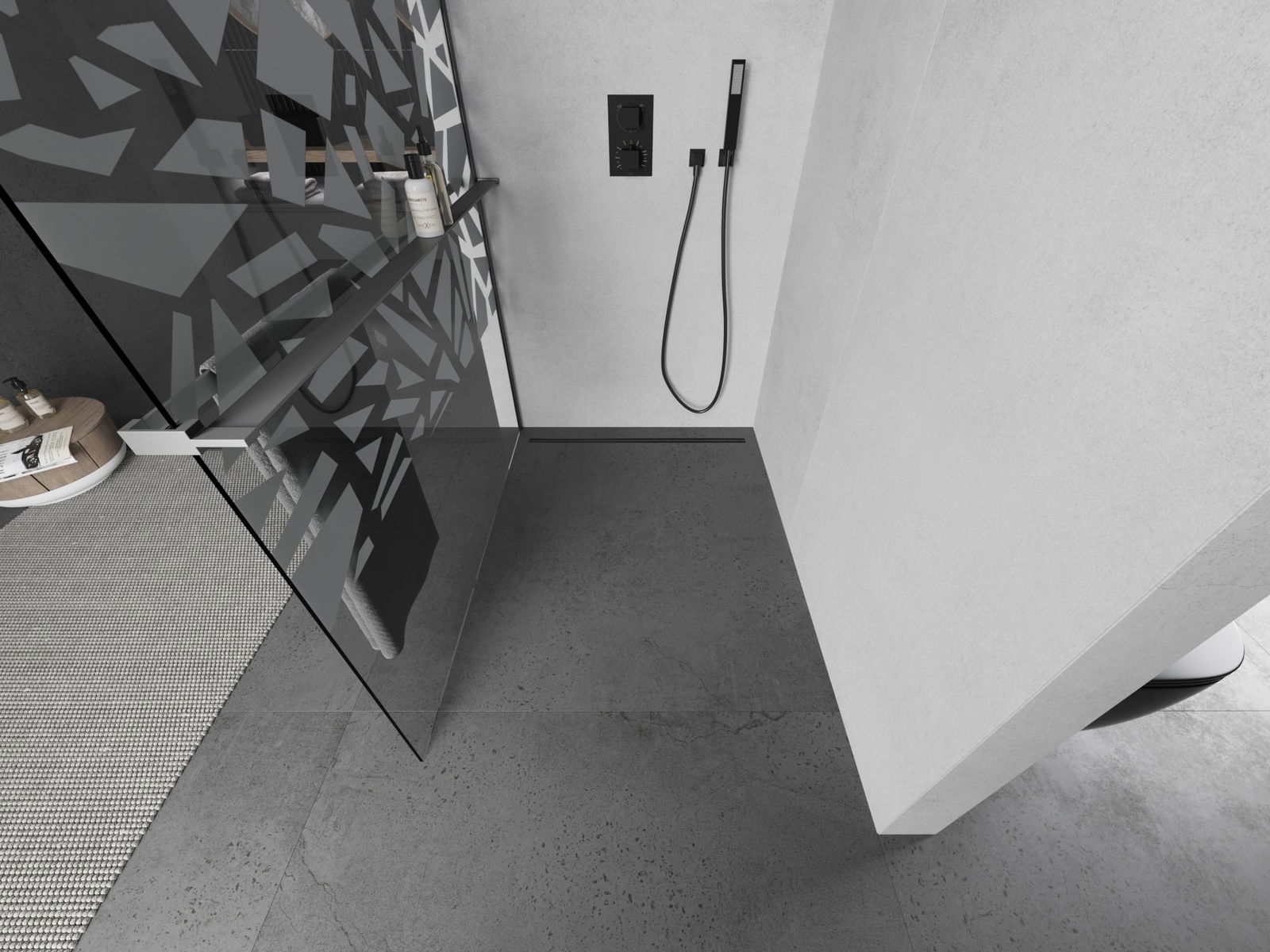 Mexen Kioto+ paroi de douche avec étagère Walk-in 80 x 200 cm, motif blanc, gun metal - 800-080-121-95-85