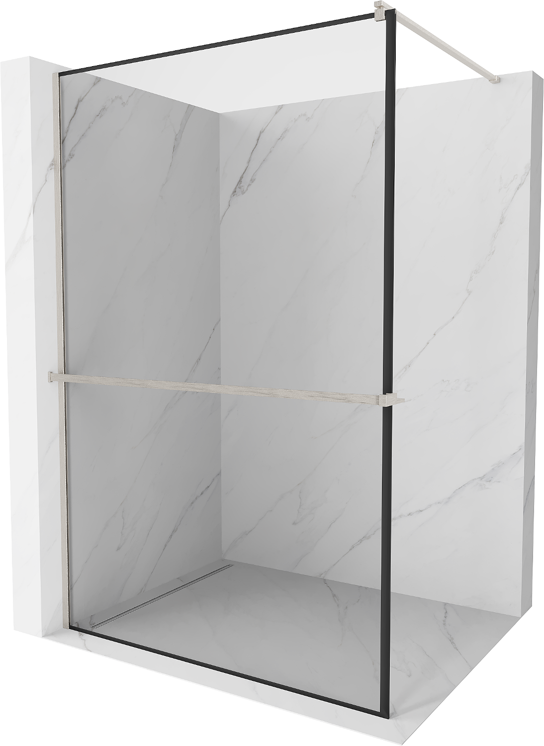 Mexen Kioto+ paroi de douche avec étagère Walk-in 140 x 200 cm, cadre noir, nickel brossé - 800-140-121-97-70