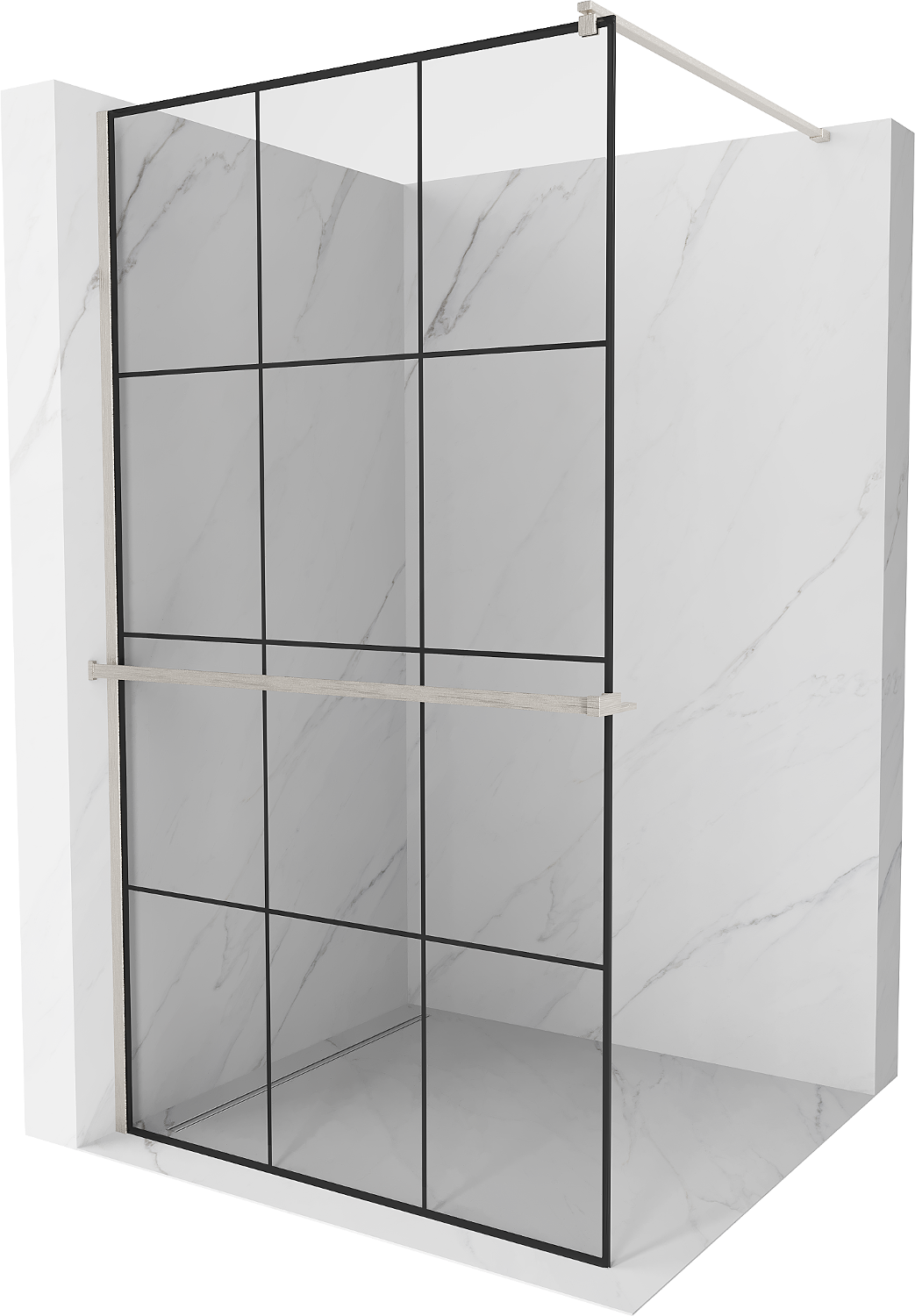 Mexen Kioto+ paroi de douche avec étagère Walk-in 110 x 200 cm, grille noire, nickel brossé - 800-110-121-97-77