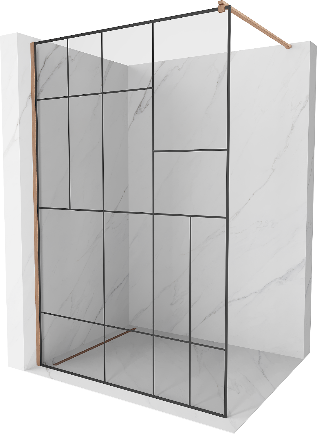Mexen Kioto paroi de douche Walk-in 140 x 200 cm, motif noir 8 mm, cuivre brossé - 800-140-101-65-78
