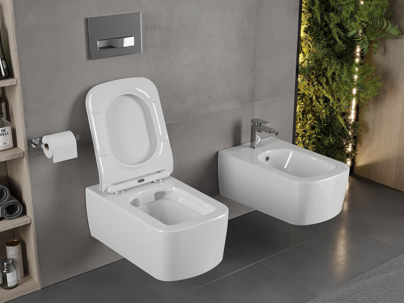 Mexen York cuvette WC Rimless avec abattant slim à descente progressive, duropalst, blanc brillant - 30114000