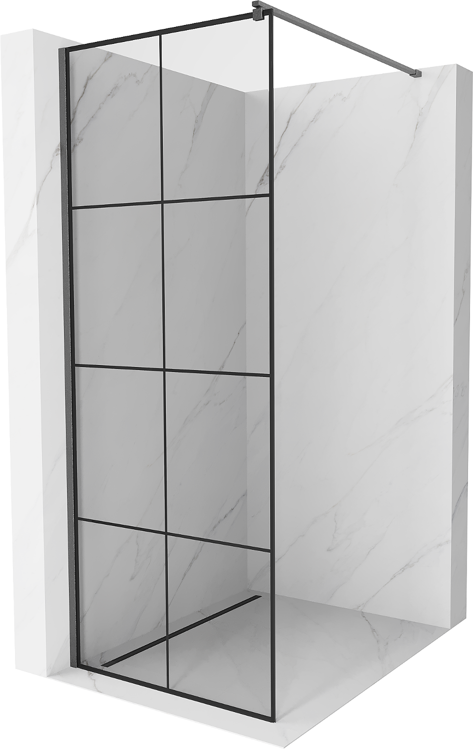 Mexen Kioto paroi de douche Walk-in 80 x 200 cm, carreaux noirs 8 mm, gris canon brossé - 800-080-101-66-77