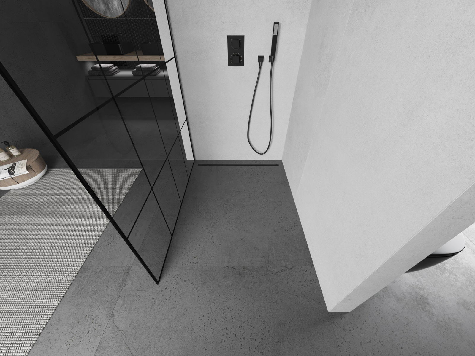 Mexen Kioto paroi de douche Walk-in 160 x 200 cm, grille noire 8 mm, gris canon brossé - 800-160-101-66-77