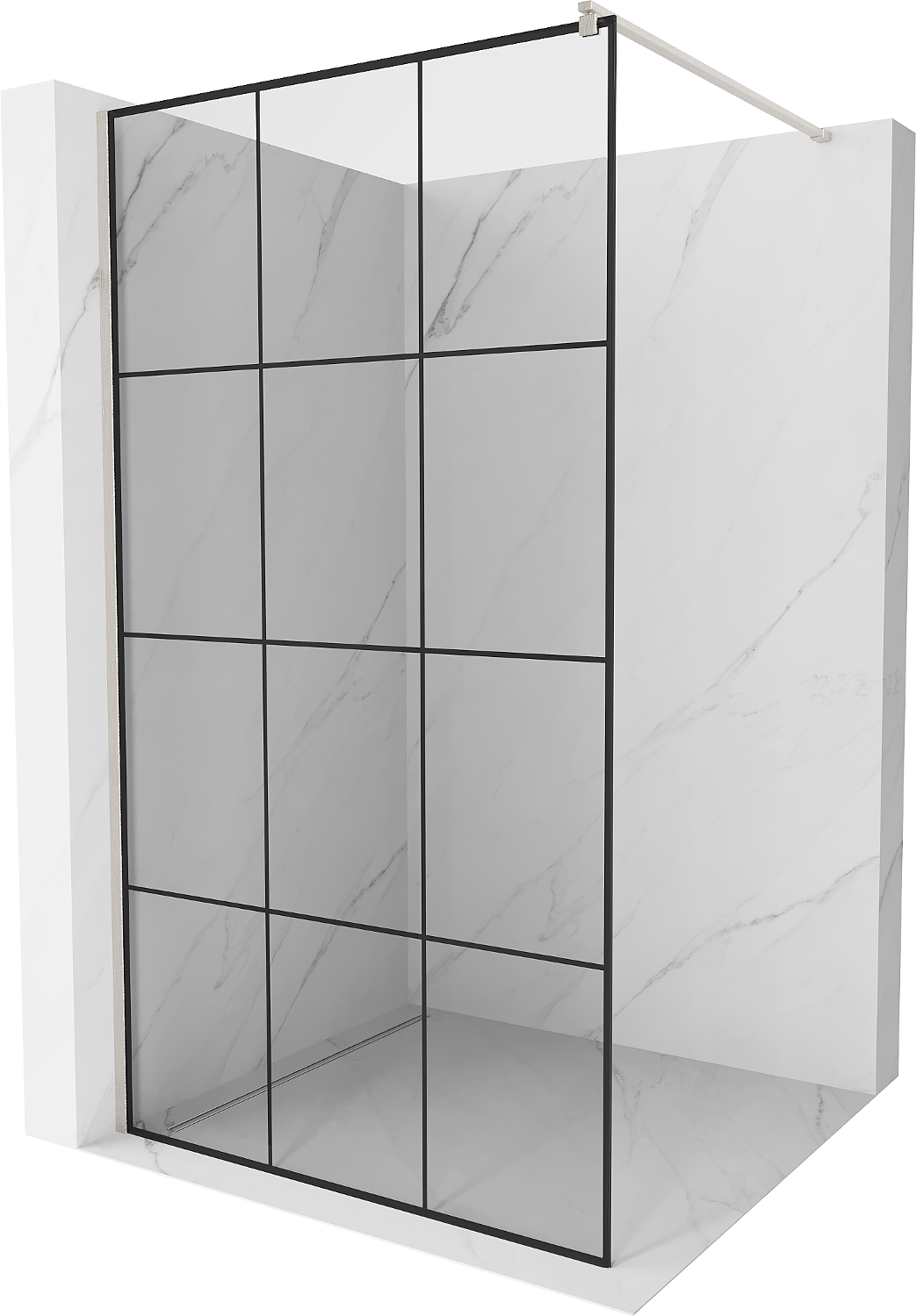 Mexen Kioto paroi de douche Walk-in 100 x 200 cm, grille noire 8 mm, nickel brossé - 800-100-101-97-77