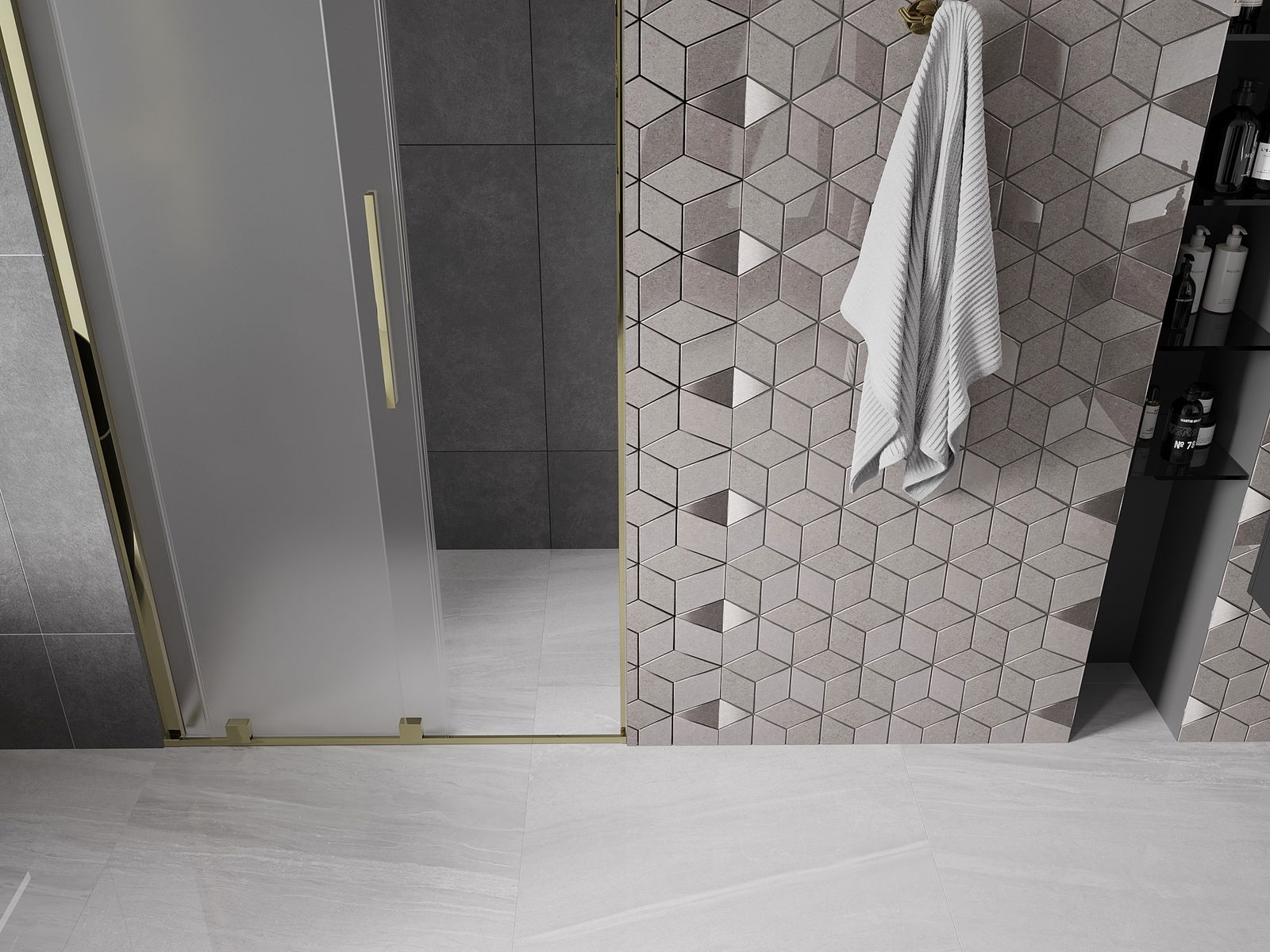 Poignée pratique et confortable en acier inoxydable. La forme moderne associée à une finition assortie à la couleur des profilés confère à l'ensemble un aspect moderne et élégant, soulignant l'esthétique de chaque salle de bain.