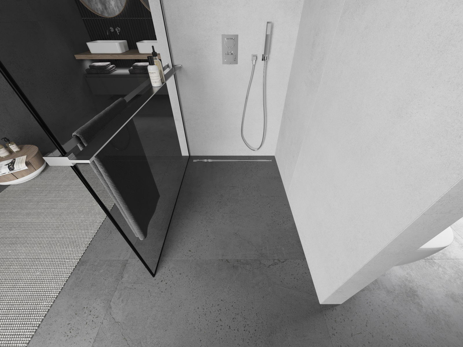 Le support à serviette dans la paroi de douche est une solution très pratique et confortable. Pendant la douche, la serviette est toujours à portée de main, facilitant une utilisation sans entrave. C'est également un endroit idéal pour sécher la serviette.