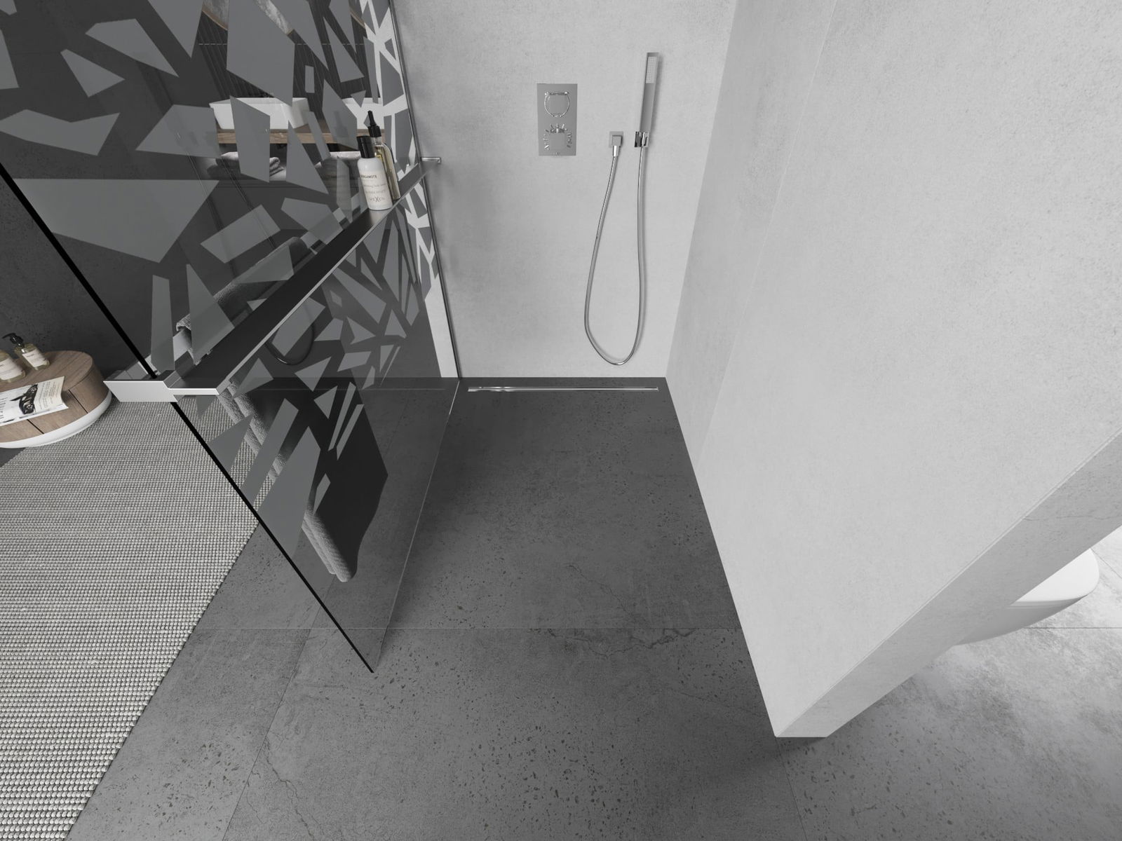Mexen Kioto+ L paroi de douche avec étagère Walk-in 90 x 200 cm, motif blanc, chrome - 800-090-123-01-85