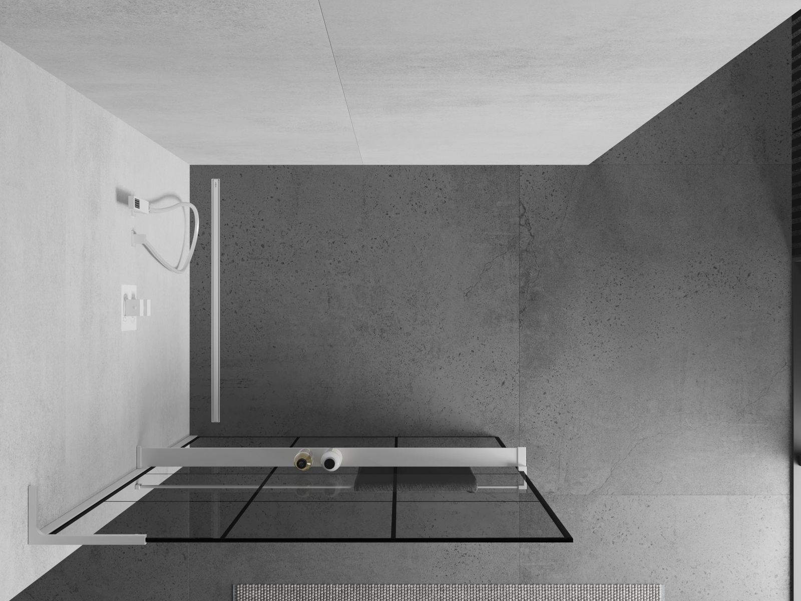 Mexen Kioto+ L paroi de douche avec étagère Walk-in 100 x 200 cm, grille noire, blanc - 800-100-123-20-77