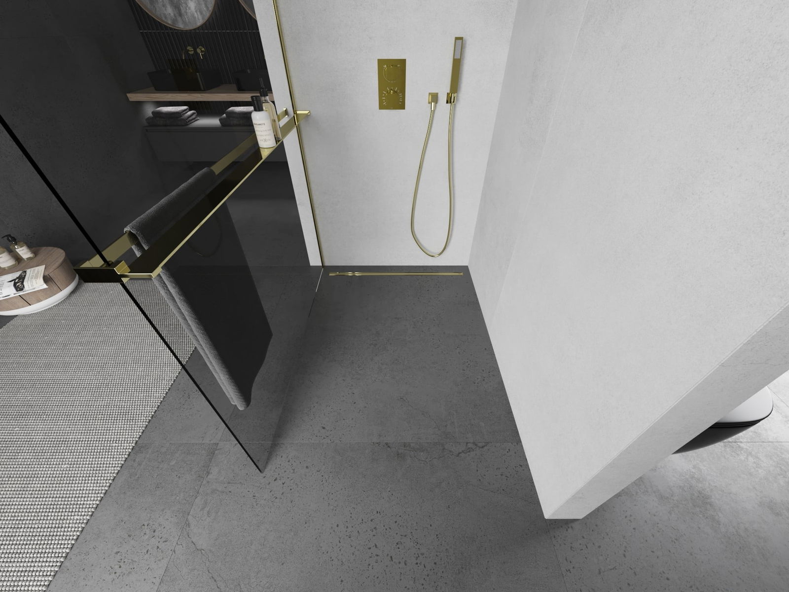 Mexen Kioto+ L paroi de douche avec étagère Walk-in 80 x 200 cm, transparent, or - 800-080-123-50-00