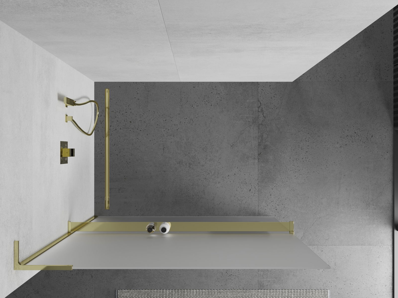 Mexen Kioto+ L paroi de douche avec étagère Walk-in 110 x 200 cm, givrée, or - 800-110-123-50-30