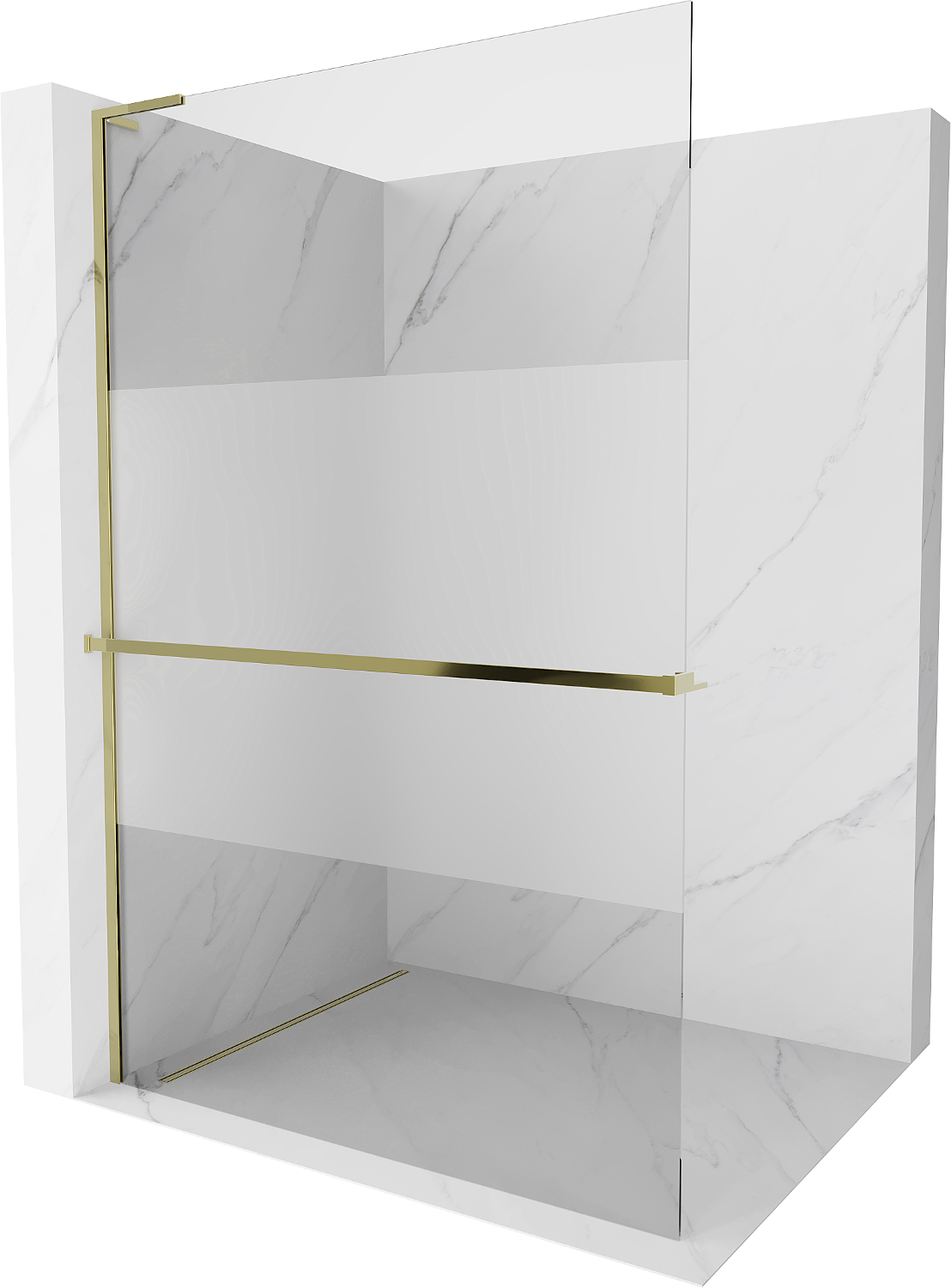 Mexen Kioto+ L paroi de douche avec étagère Walk-in 100 x 200 cm, transparent/givre, or - 800-100-123-50-35