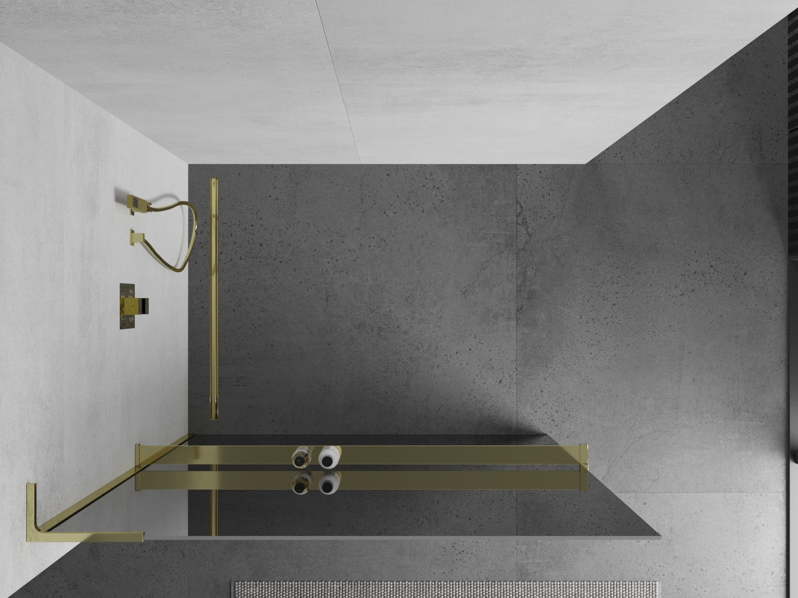 Mexen Kioto+ L paroi de douche avec étagère Walk-in 70 x 200 cm, miroir, or - 800-070-123-50-50