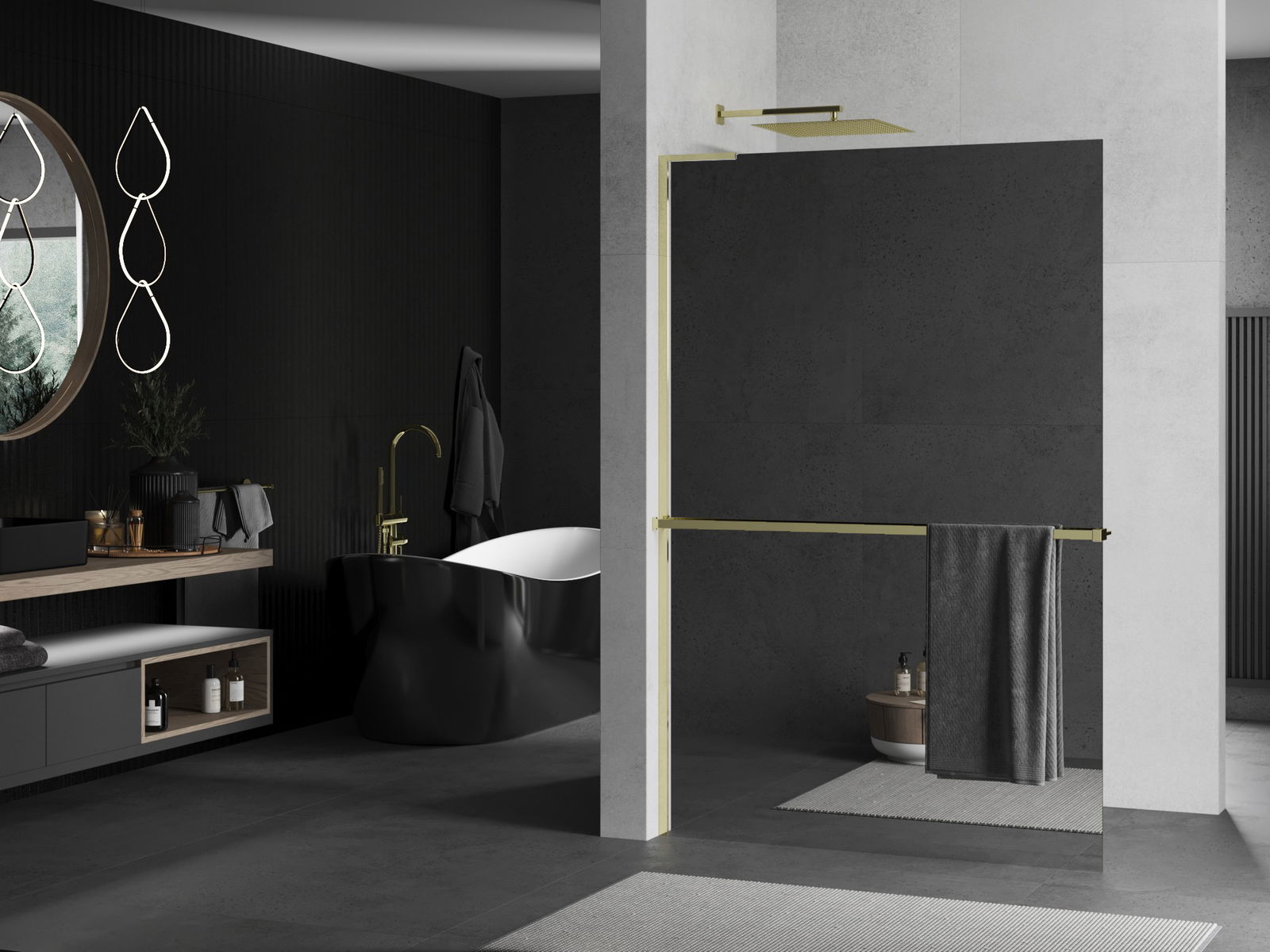 Mexen Kioto+ L paroi de douche avec étagère Walk-in 100 x 200 cm, miroir, doré - 800-100-123-50-50