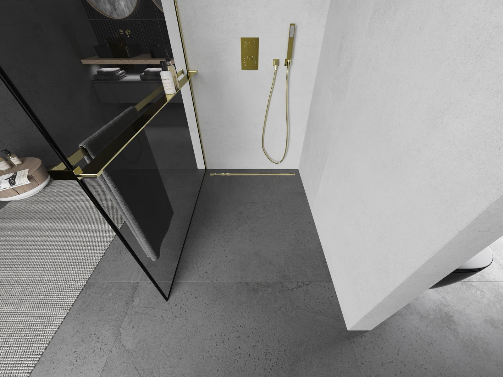 Mexen Kioto+ L paroi de douche avec étagère Walk-in 90 x 200 cm, cadre noir, doré - 800-090-123-50-70