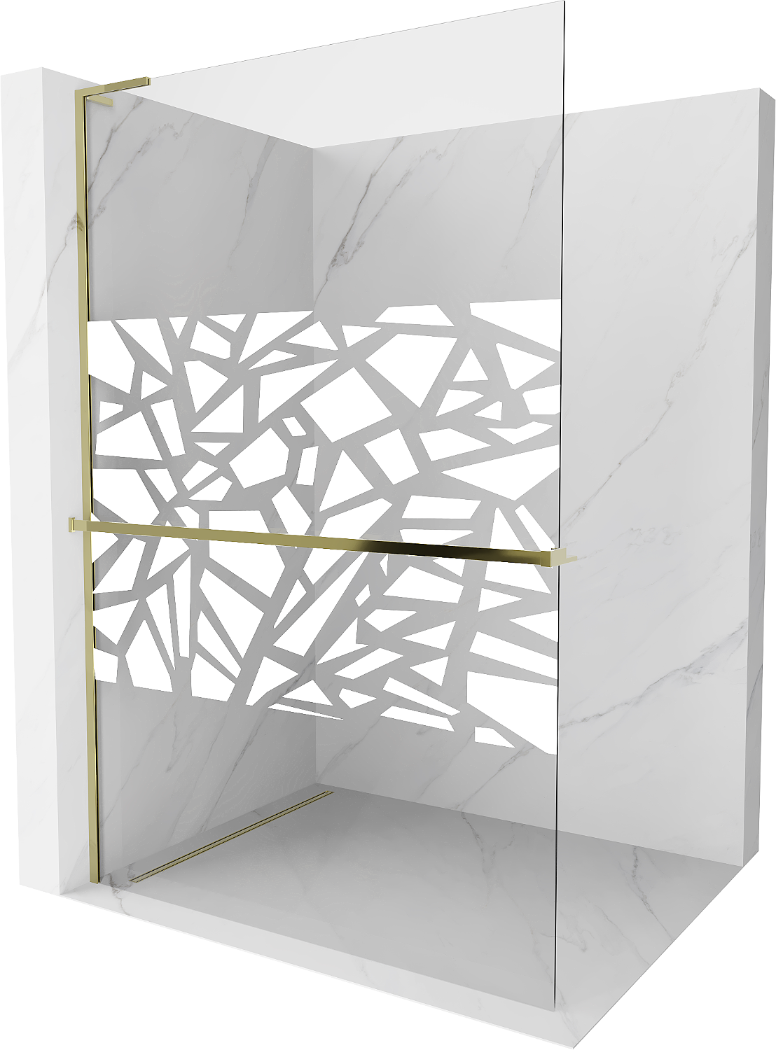 Mexen Kioto+ L paroi de douche avec étagère Walk-in 90 x 200 cm, motif blanc, or - 800-090-123-50-85