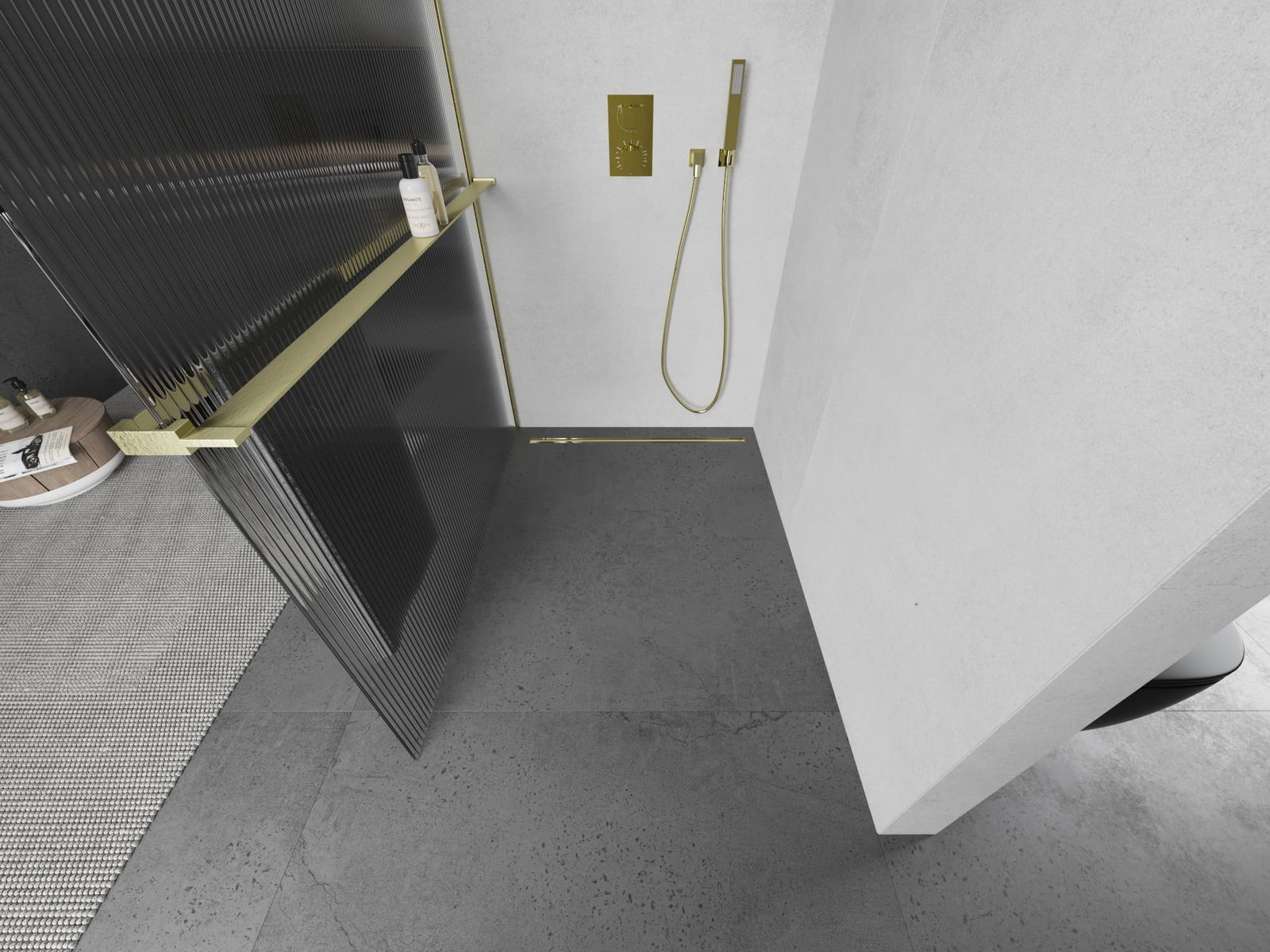 Mexen Kioto+ L paroi de douche avec étagère Walk-in 80 x 200 cm, rayures, or brossé - 800-080-123-55-09