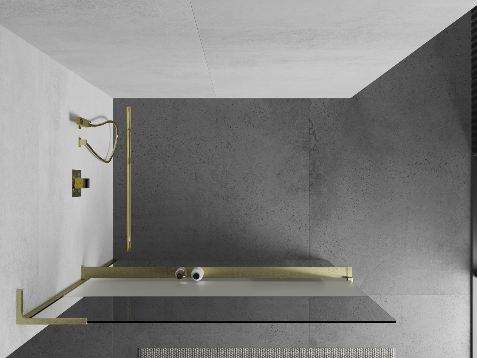 Mexen Kioto+ L paroi de douche avec étagère Walk-in 90 x 200 cm, transparent/verre dépoli, or brossé - 800-090-123-55-35