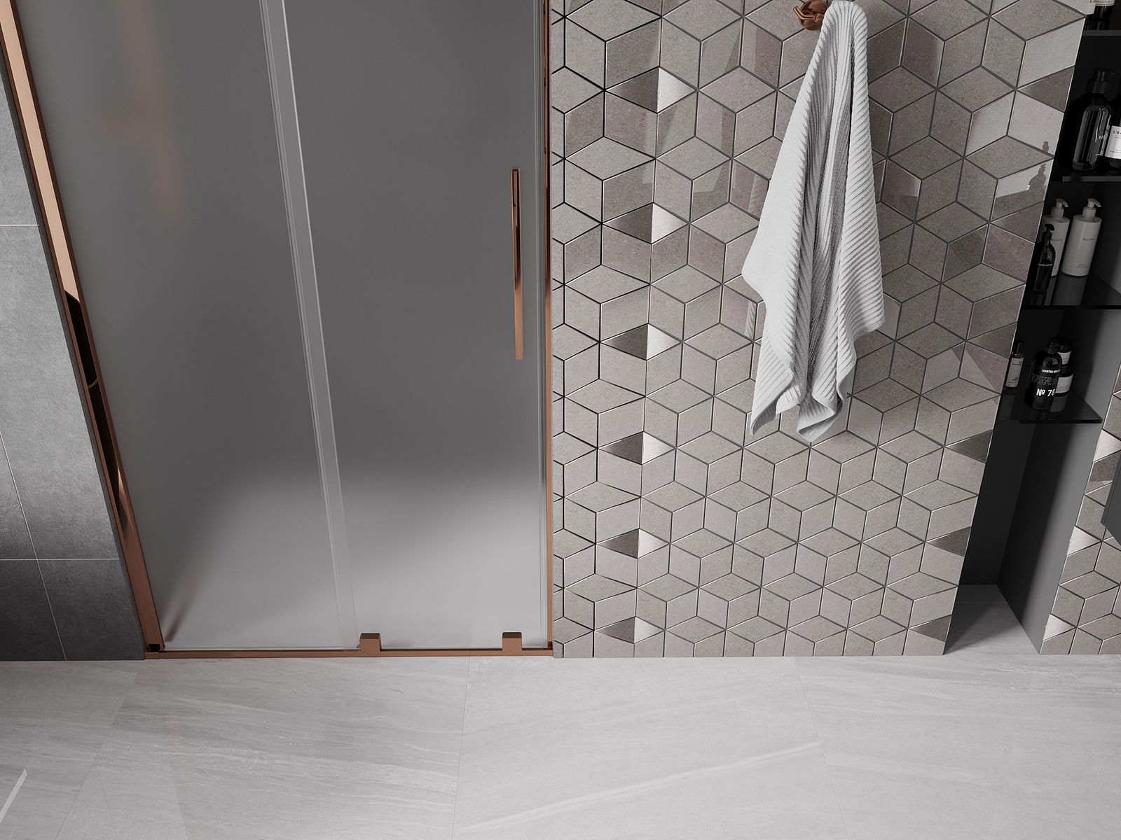 Mexen Velar porte de douche coulissante 110 cm, givre, or rose - 871-110-000-31-60