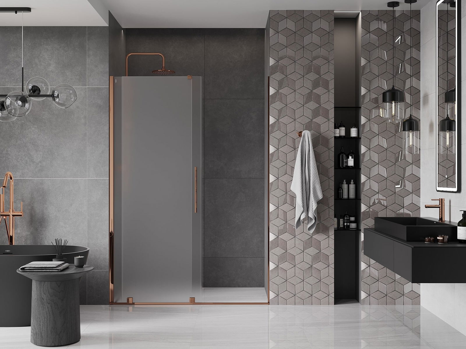 Mexen Velar porte de douche coulissante 130 cm, dépoli, or rose - 871-130-000-31-60