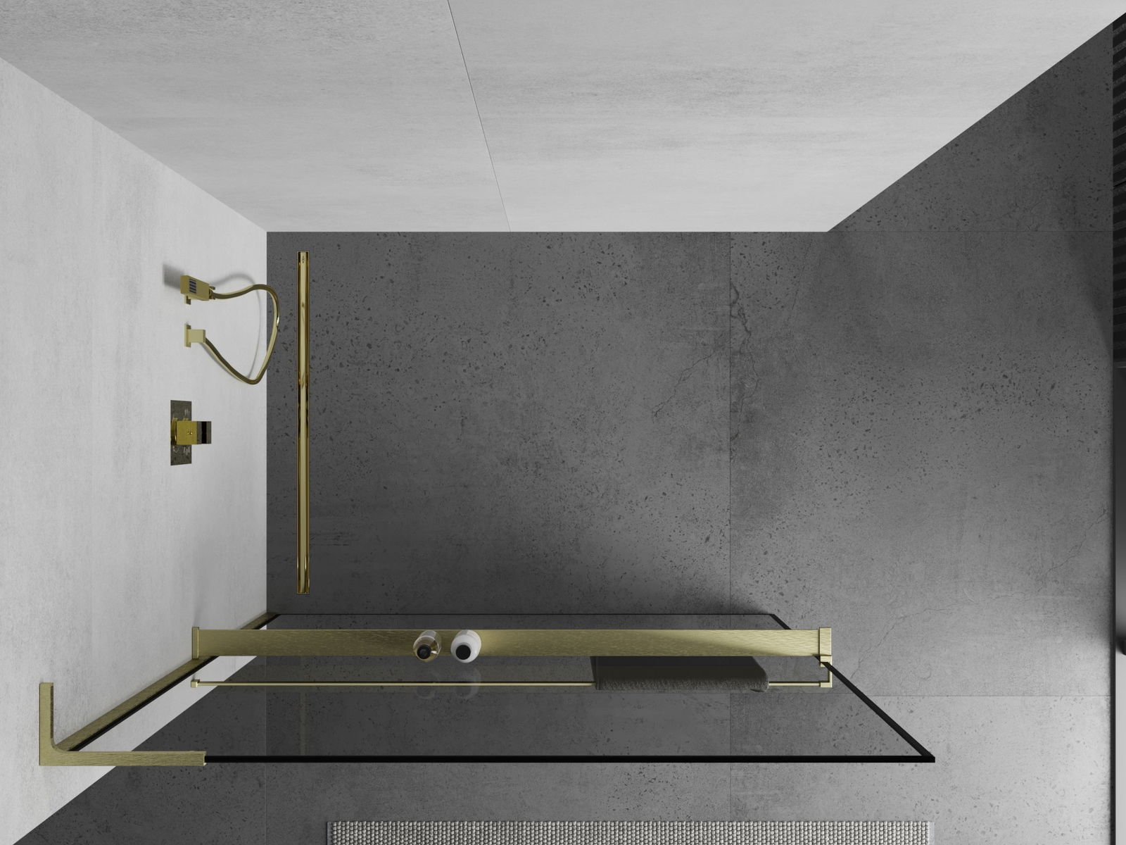 Mexen Kioto+ L cloison de douche avec étagère Walk-in 120 x 200 cm, cadre noir, or brossé - 800-120-123-55-70