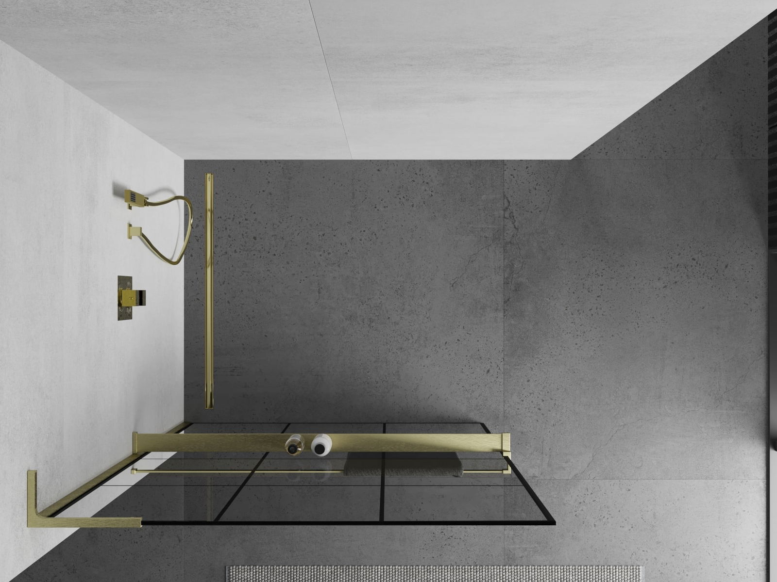 Mexen Kioto+ L paroi de douche avec étagère Walk-in 100 x 200 cm, quadrillage noir, or brossé - 800-100-123-55-77