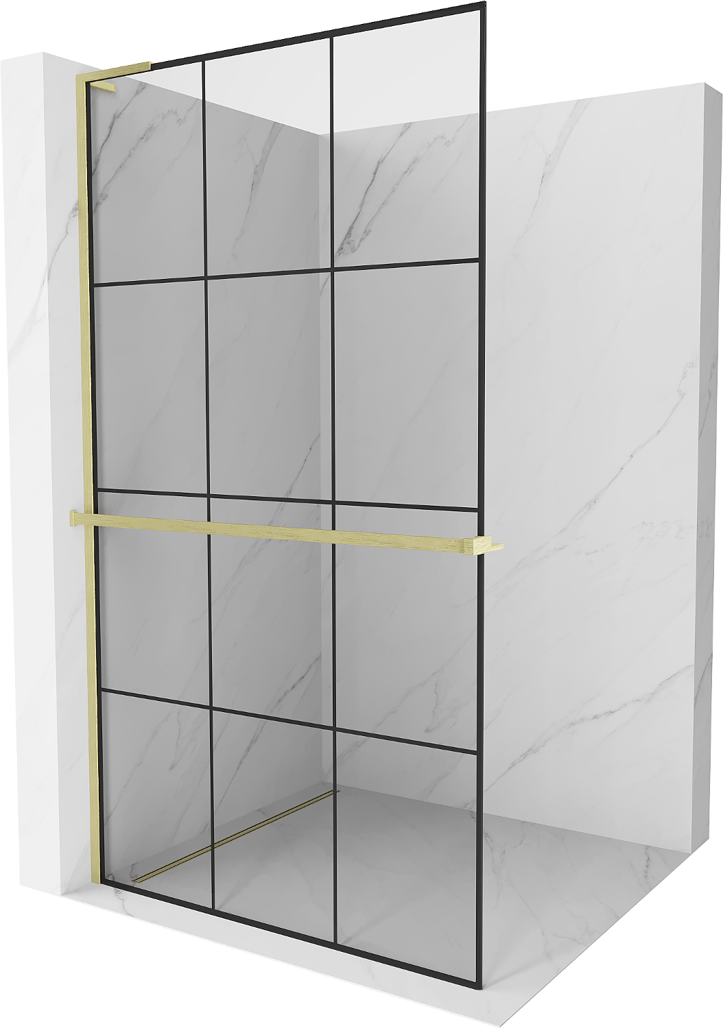 Mexen Kioto+ L paroi de douche avec étagère Walk-in 110 x 200 cm, grille noire, or brossé - 800-110-123-55-77