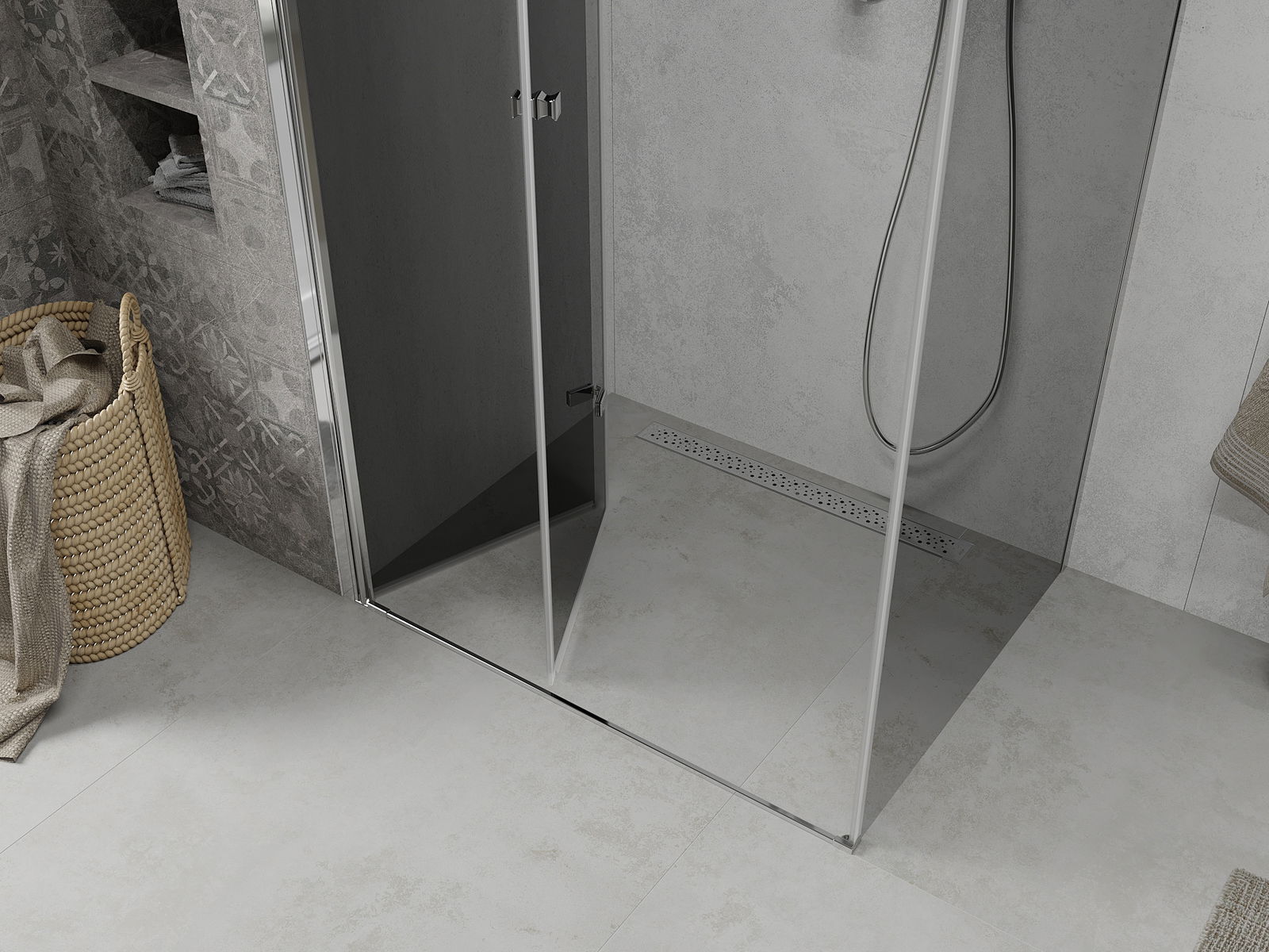 La possibilité de plier les portes, aussi bien vers l'extérieur que vers l'intérieur, permet de gagner plus d'espace lorsque la douche n'est pas utilisée. C'est une solution idéale pour les petites salles de bains, maximisant l'utilisation de l'espace disponible.